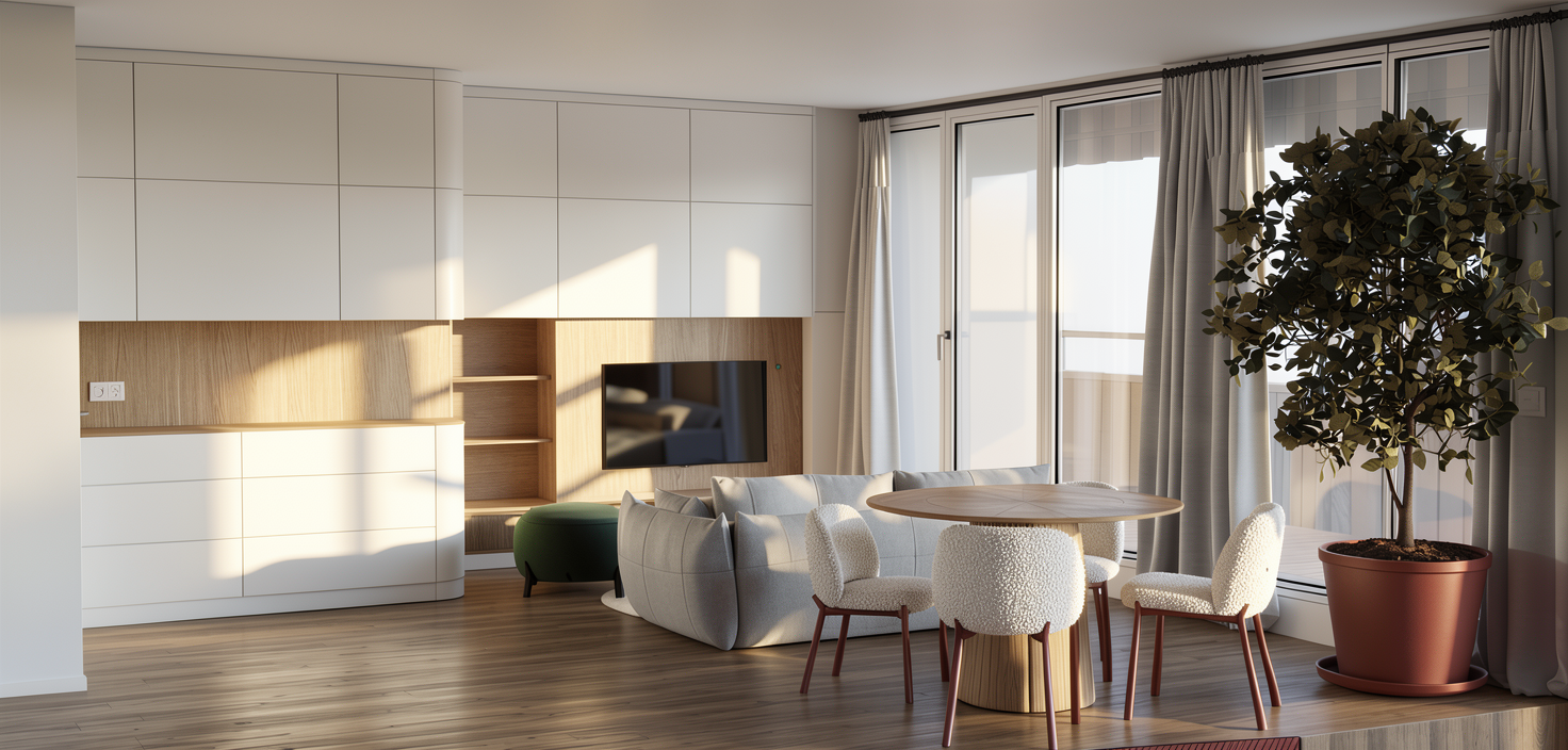 render terlihat nyata dan natural dengan konsep gaya japandi tanpa merubah material bentuk dan ukuran dari gambar