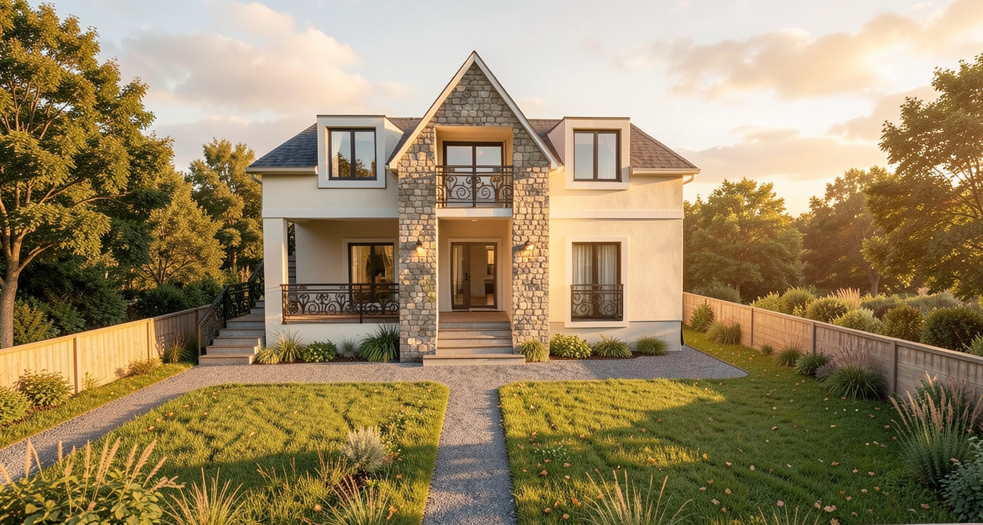 use brown gray brick on the front of the house use a combination of siding and brick and board and batten