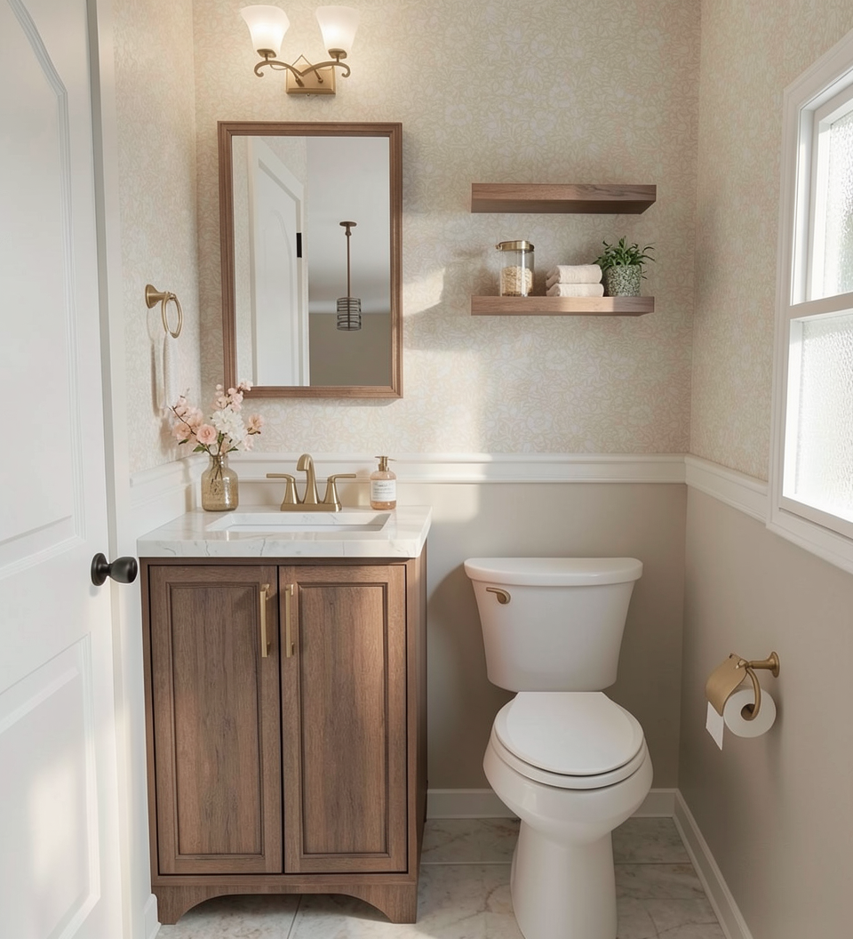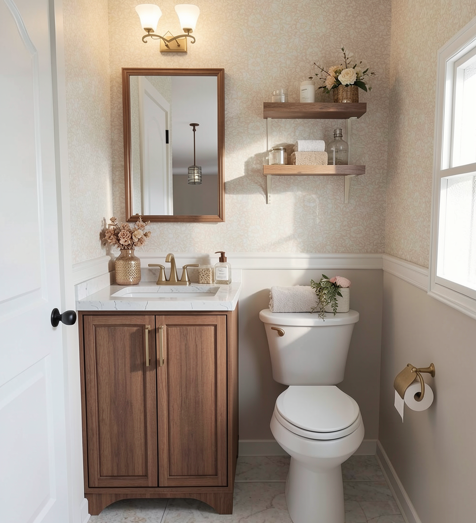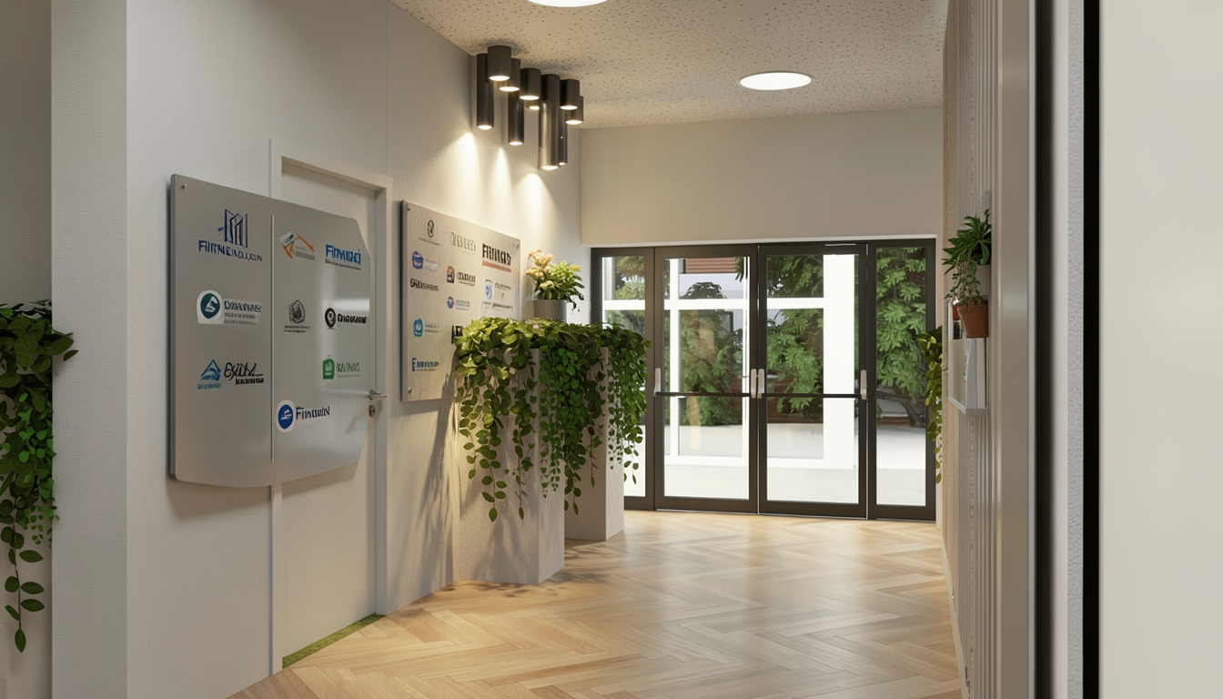 a modern curved reception desk exudes understated luxury topped with a honed taj mahal quartzite countertop in soft white with subtle gray veining the front of the desk is clad in a medium warm toned refined bronze toned metal surface with a soft brushed vertical grain and gentle tonal variation warm bronze and muted gold undertones create a satin lightly mottled finish that reflects light subtly without glare conveying a sense of contemporary elegance and high end craftsmanship an inset of honed taj mahal quartzite is seamlessly integrated into the desk front highlighting layered detailing and material contrast the desk is set against smooth off white vertical wall panels and accented by a flagstone column composed of irregular natural gray stones introducing organic texture to the space soft ambient lighting enhances the surfaces and tonal depth reinforcing the refined modern atmosphere black framed picture windows overlook a lush golf course beneath a warm summer sky allowing natural light to balance the warm interior palette dark stone flooring grounds the space and complements the bronze metal tones completing a sophisticated interior defined by clean lines minimal detailing and architectural restraint