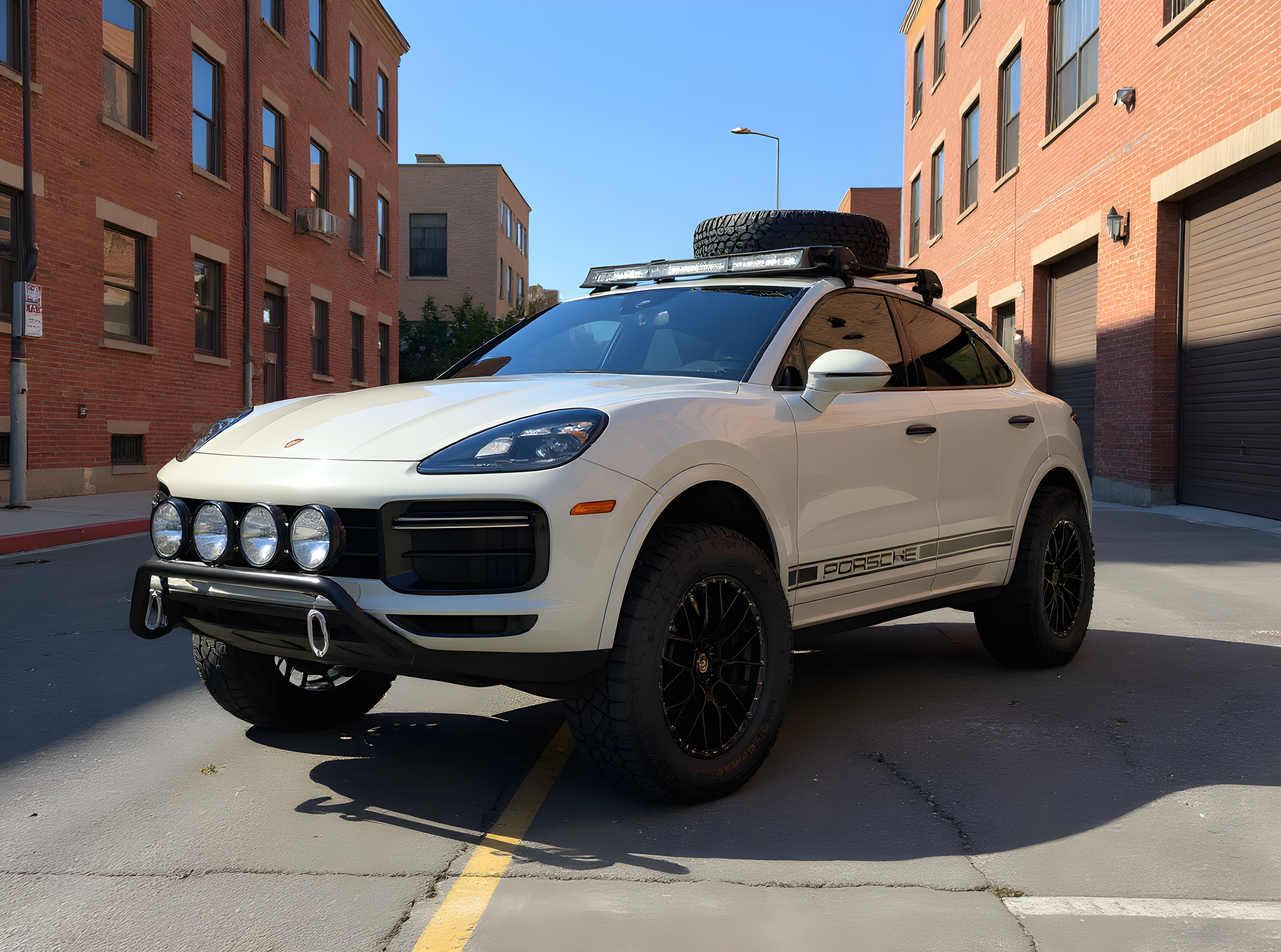 change the background to baja california dirt road with a ford rally truck behind and a toyota rally truck on the left sun shining from the right side