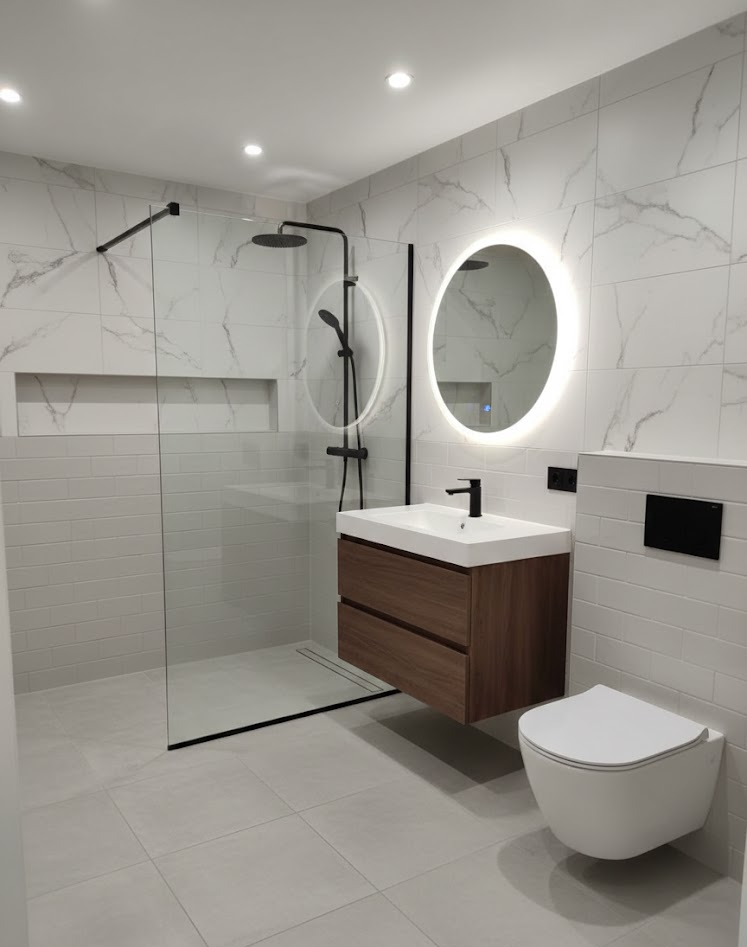 prompt transform a worn out room into a beautifully renovated space the walls are painted in a soothing light gray with accents of white for the trims and window frames the damaged area is repaired and covered with an elegant light wood paneling the floor is revitationally upgraded with polished dark oak wood the scene is filled with bright natural sunlight streaming through the large clean window casting soft shadows on the floor the atmosphere is warm and inviting with modern minimalist decor including a cozy gray armchair and a small lush green potted plant near the window for a touch of nature