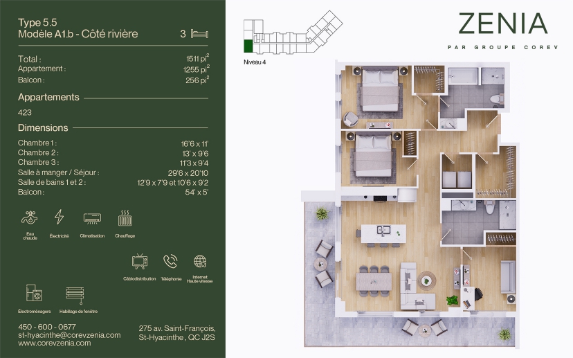turn this 2d into a 3d make a realistic rendering of the living room keep the same furniture arrangement this a unit layout with the dimensions of every space follow the drawing for configuration of the design of the living room the angle of the view should show the dining table couch kitchen island and the balcony the floors should be a wooden parquet like the floor plan he interior design should be similar to the floor plan too but elevated it s a rental so the decor should be rental friendly keep the view eye level there is no shower showing thbe view from the balcony is a river so it s perfect the living room becomes larger at the end where the dining table and couch are and the couch is facing the tv on the right wall