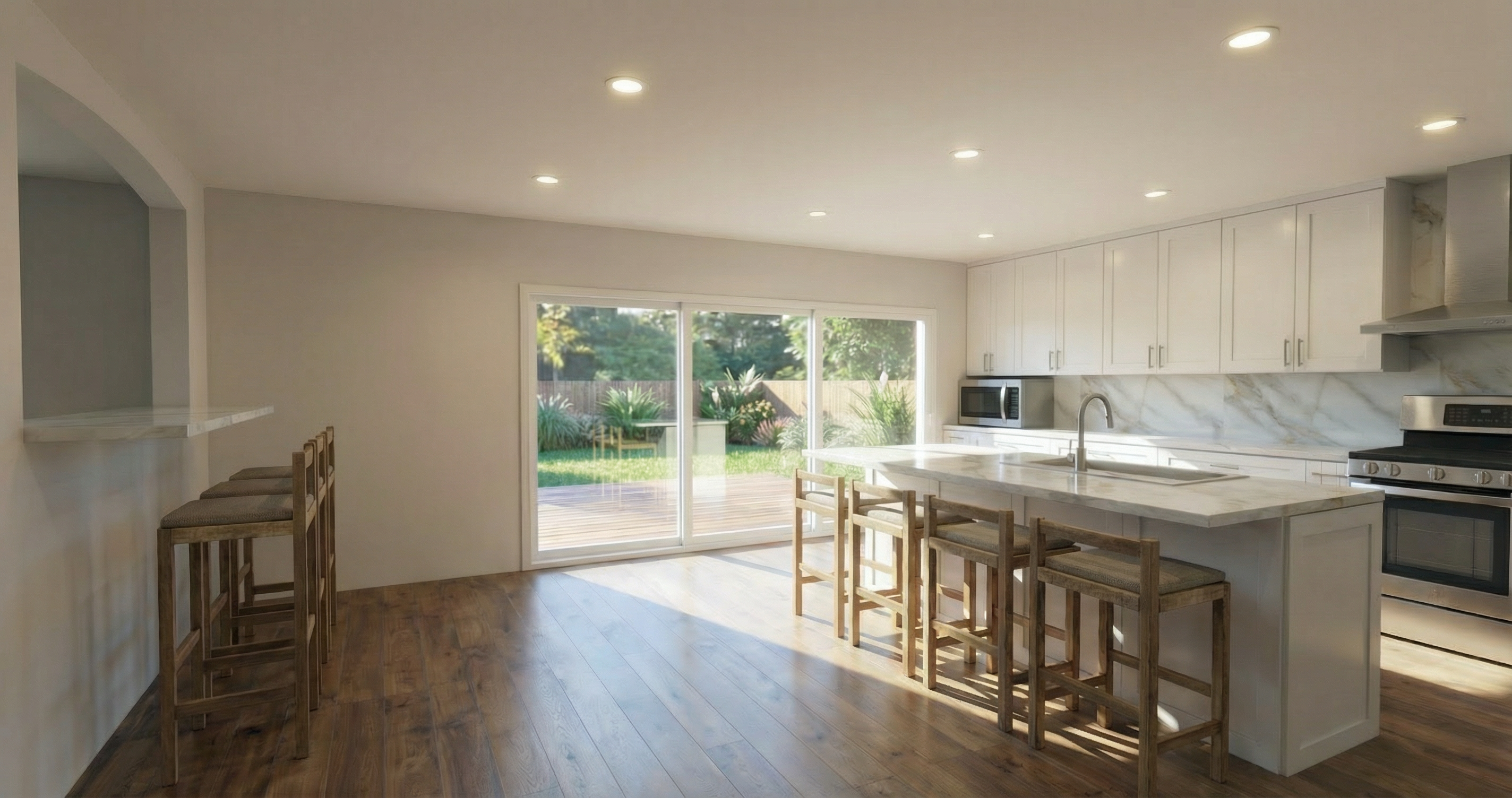 make a rendering of this kitchen https bau xi com collections janna watson products pov2 you can catch someones mood by sitting close to them 29131 delete the upper cabinet to the right of the island add hanstone matterhorn quartz to the countertop and backsplash up to the underside of the island 3 of hanstone matterhorn should frame the window