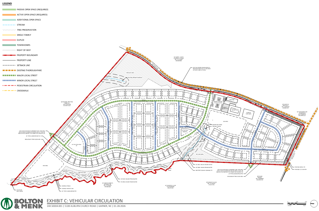 plot this plane located at 5100 auburn church road garner nc as a photorealistic arial view show homes duplexes and townhomes as indicated on the plan