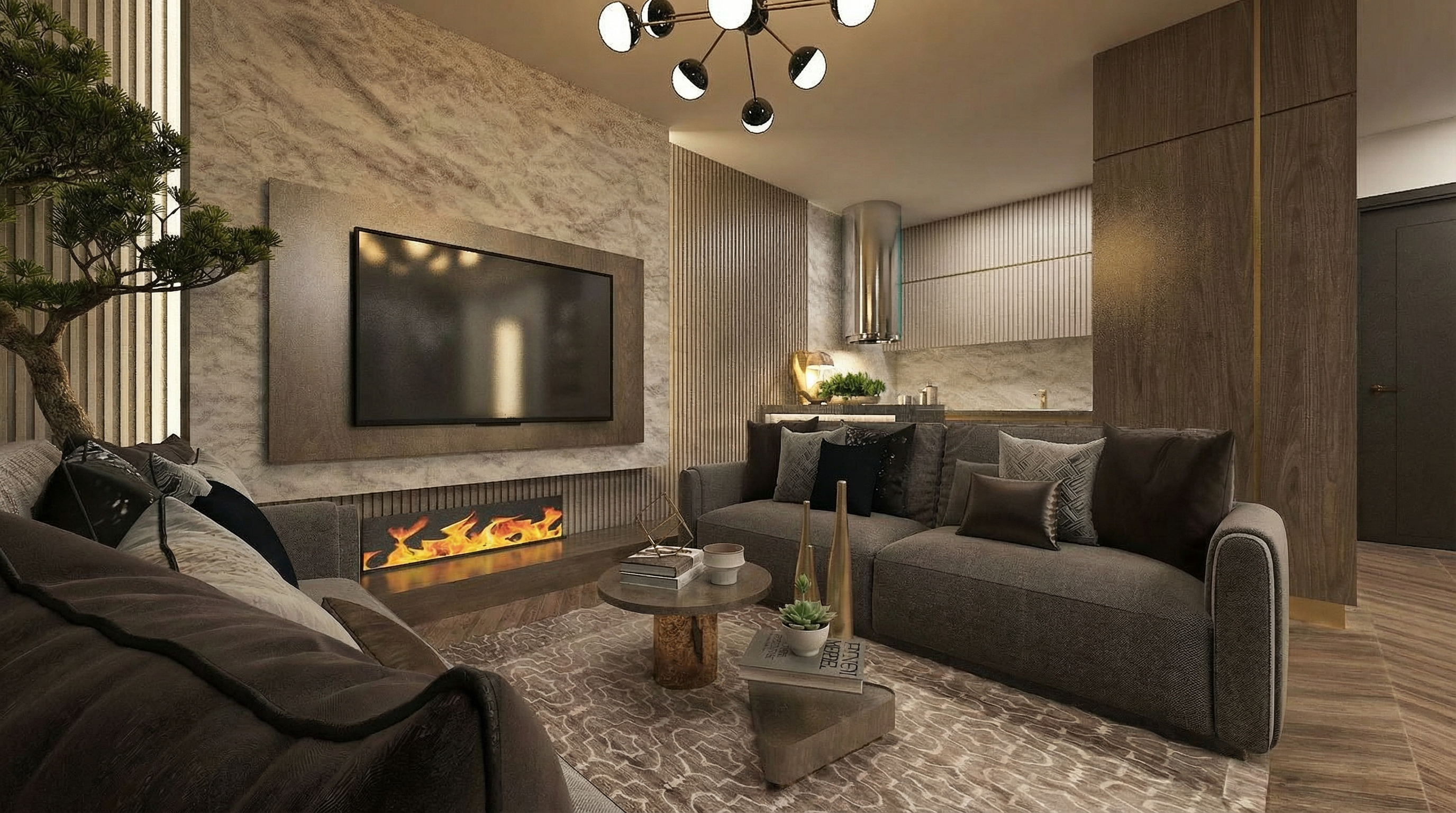 a relaxing room to have a cocktail and read a book with the woodstove burning and soft long curtains on the windows