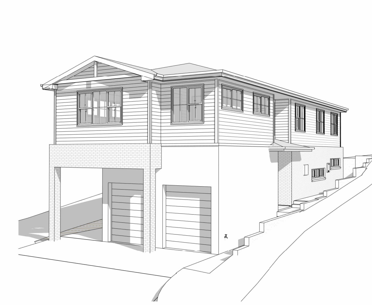 exterior shot create facade to best suit sketch render
