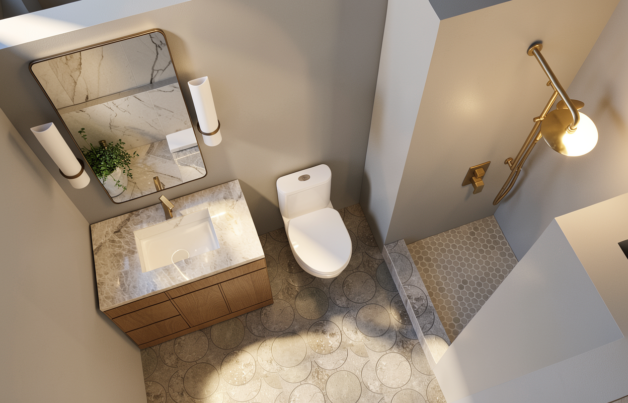 color rendering brown cabinets blue wall light brown tile floor dont show side walls