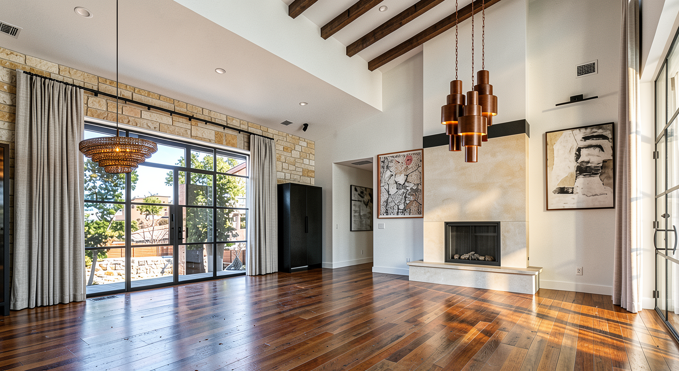 create a rendering of this new american style something classic with dark vertical siding white windows light stone veneer and wood on accent gables and posts