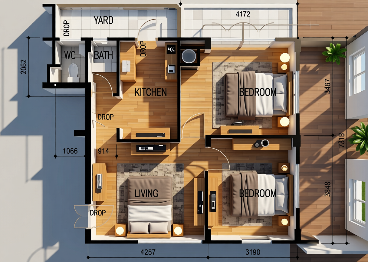 provide an elevation of the living room