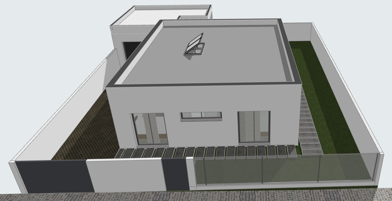 a highly realistic architectural visualization aerial perspective view at an oblique angle showing a contemporary residential architectural project inserted in a dense urban mediterranean context the building is surrounded on both sides by neighboring mediterranean style houses with white and light pastel plaster fa ades terracotta roof tiles wooden shutters balconies and subtle aging textures the project integrates harmoniously with the urban fabric while maintaining a contemporary architectural language ultra realistic materials and textures detailed plaster concrete natural stone wood and glass with physically accurate reflections and imperfections high quality pbr textures visible material grain and weathering realistic shadows and ambient occlusion lighting natural daylight late afternoon golden hour soft warm sunlight casting long shadows global illumination realistic sky with light clouds balanced exposure cinematic lighting urban details paved streets sidewalks vegetation in planters and small trees realistic rooftops surrounding buildings with depth and variation subtle urban clutter no distortion rendered in photorealistic style ultra high resolution sharp focus professional architectural render realistic scale and proportions cinematic composition depth of field