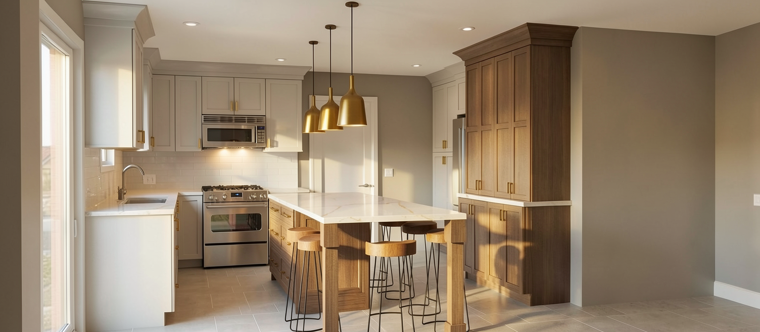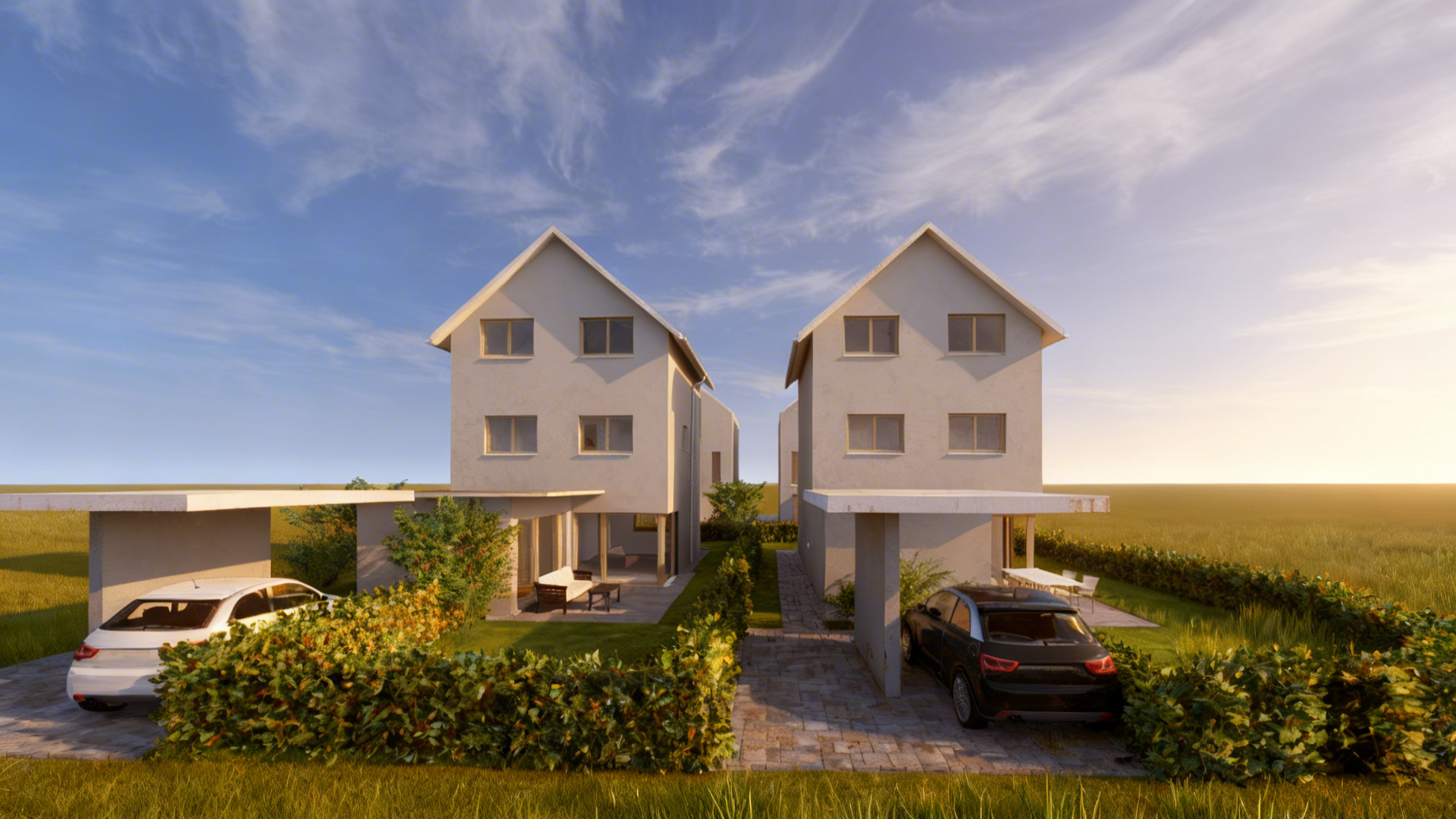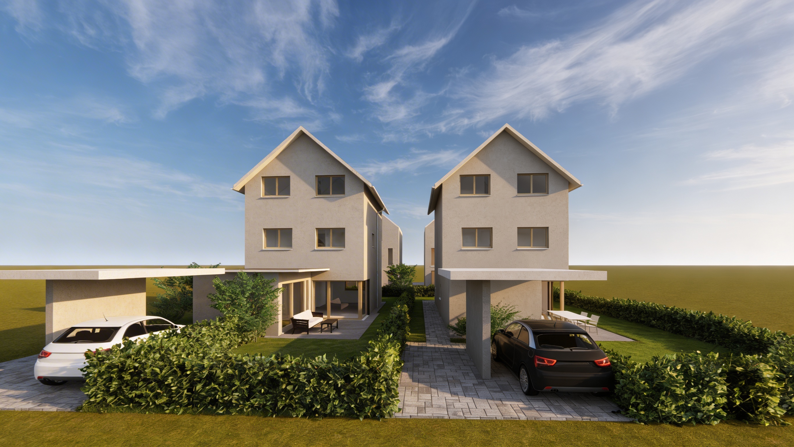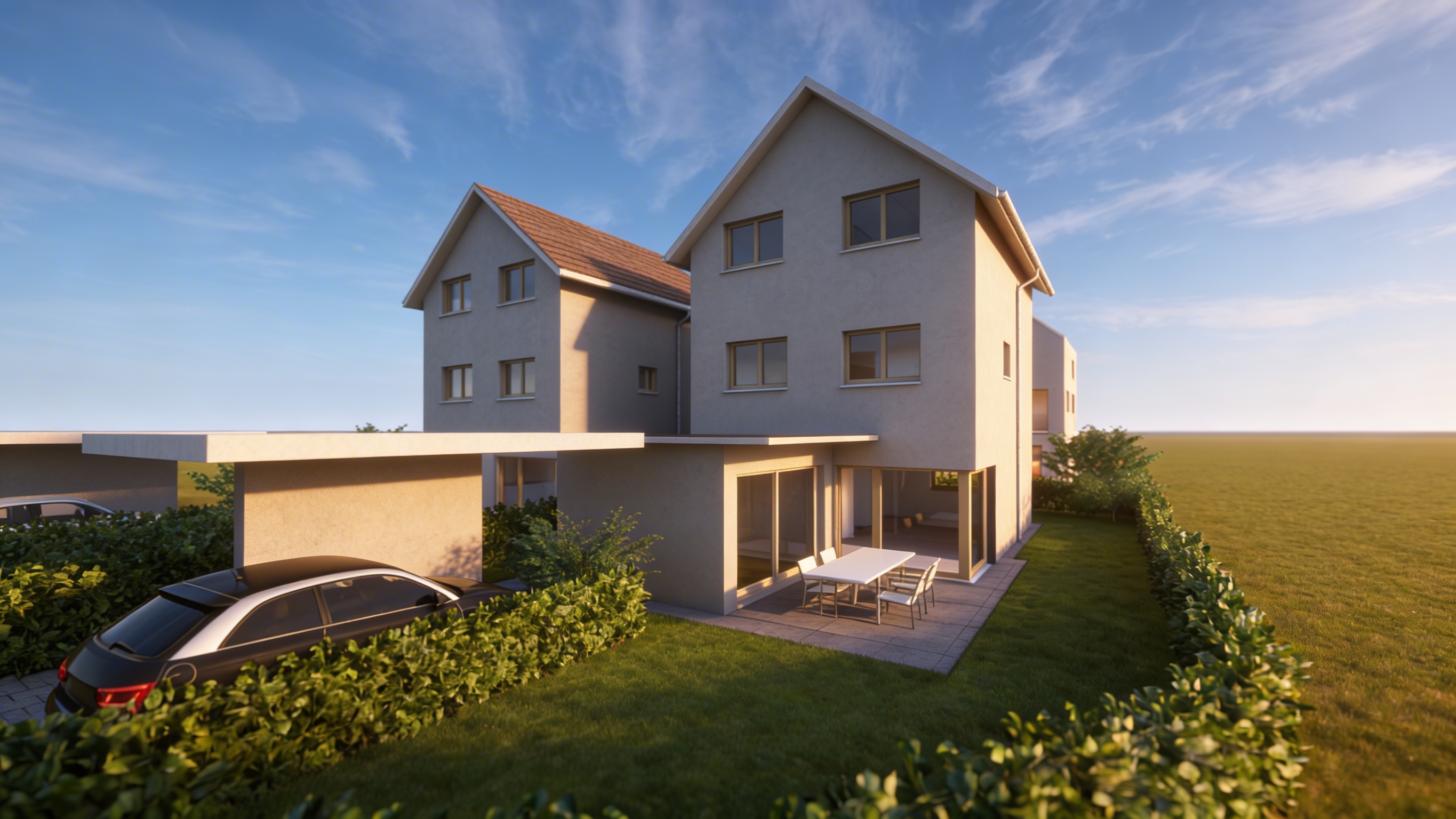 create a highly photorealistic architectural visualization with warm daylight