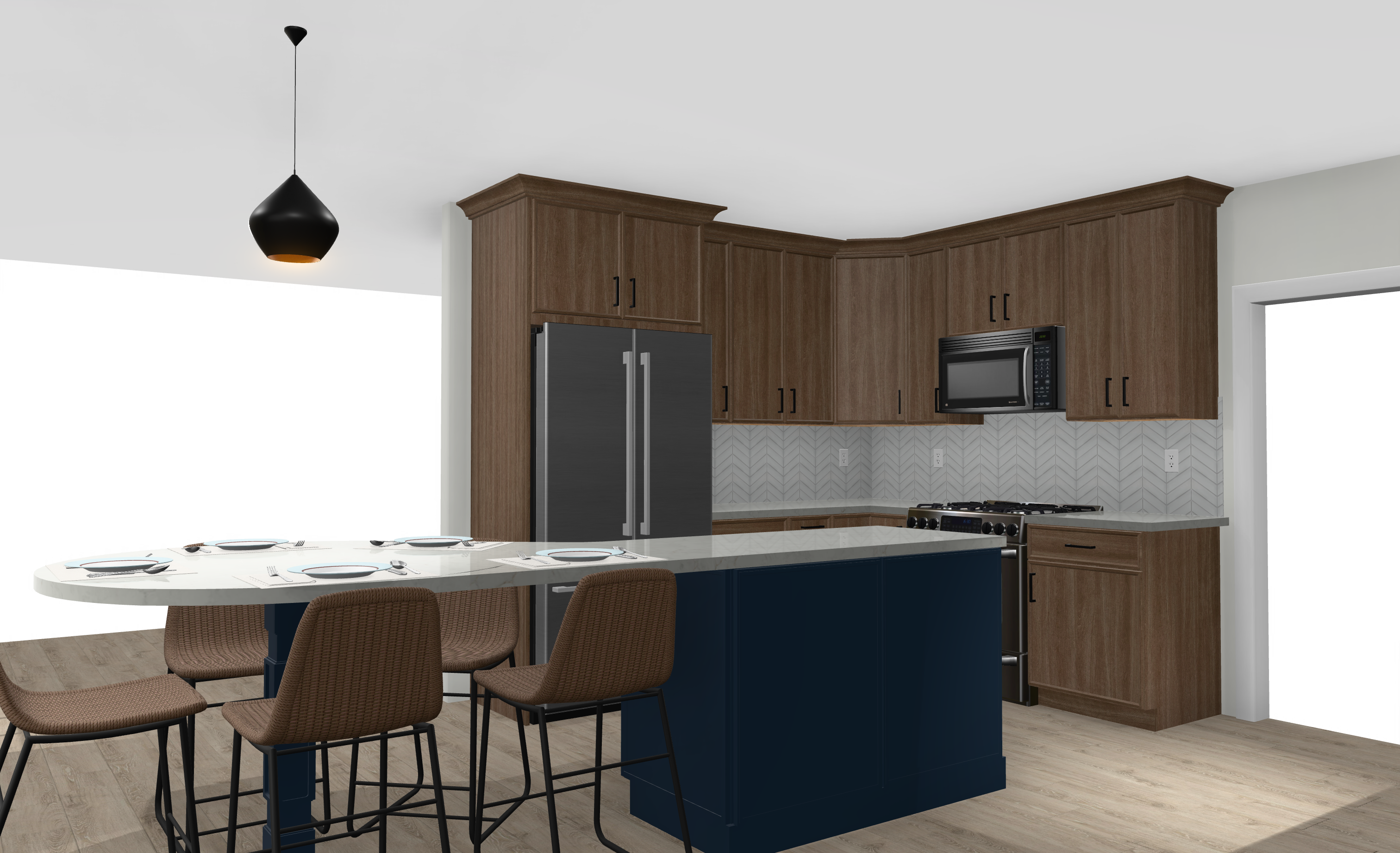replace the windows in the background with a fireplace with white surround and a wood mantel with tv above place a chair next to it