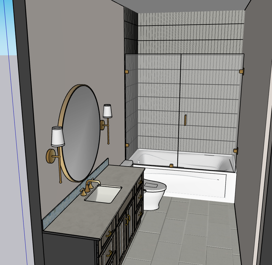 photorealistic rendering of bathroom keep architectural details include vertical fluted wall tile in shower