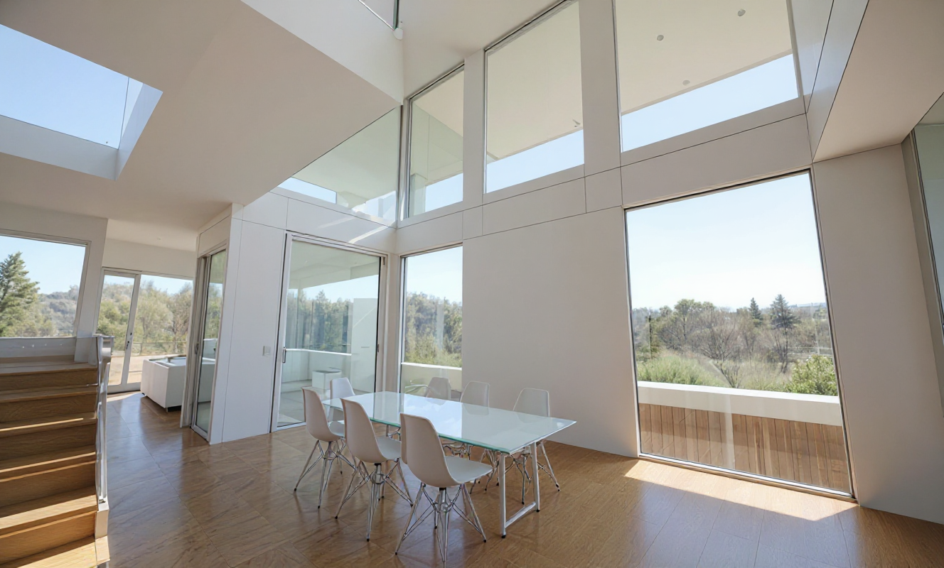 a modern wood burning stove centered on a feature wall matte black steel stove with glowing flames soft fire light reflecting on surrounding surfaces vertical black flue pipe extending to the ceiling feature wall in warm dark mineral plaster with subtle brown and charcoal undertones not pure gray slightly textured finish with natural variations inspired by lime plaster or microcement hearth made of dark stone with warm undertones matte finish adjacent wooden stairs in natural oak warm and slightly golden overall palette charcoal warm taupe deep brown black natural wood