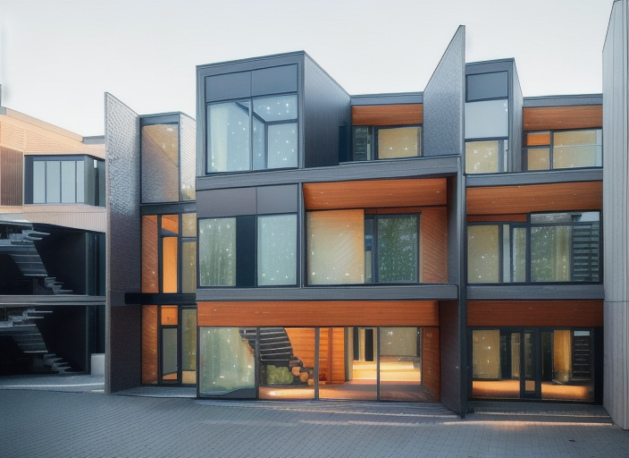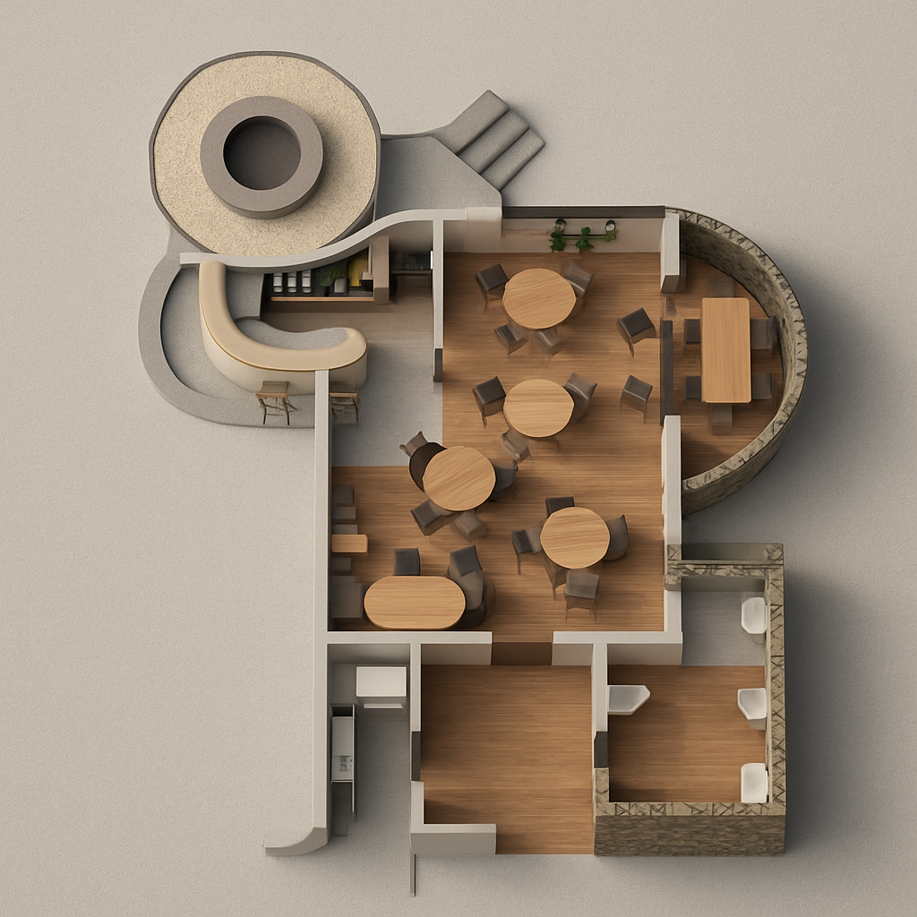 photorealistic render of a modern bathroom with two enclosed toilet spaces and a central shower area separated by glass partitions the floor and shower base feature white marble with dark red veining extending into the wall details the walls are covered in really light gray porcelain tile with narrow vertical windows allowing soft daylight the view of the windows is a blurry pine forrest from afar with a vertical dark lattice on the outside of the windows there is a light wood door on the left include realistic reflections on the glass and matte black hardware details the overall lighting should feel natural and serene highlighting a minimal spa like luxury design