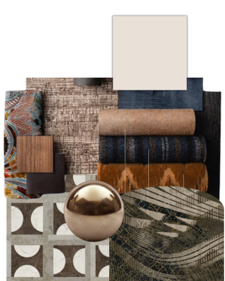 exterior shot important do not change keep the existing flooring exactly as is pattern tone scale keep the existing wallpaper inside the arches exactly as is keep the current furniture layout and seating groupings seating layout important detail maintain the same grouped seating arrangement chairs should stay in intimate circular clusters for conversation spacing should feel balanced and intentional like a lounge setting center tables add add a round wood table in the center of each seating group finish rich walnut or dark stained wood matte or soft satin finish not glossy design clean slightly thick top solid minimal base scale tables proportionally to seating for a grounded look ceiling design focus enhance the ceiling with layered architectural detail add lowered circular ceiling features above each chandelier shape soft round oval recessed drop ceilings aligned with seating zones finish smooth matte plaster in warm off white inside each ceiling drop add a textured sculptural detail like soft carved plaster or radial pattern inspired by the image keep it subtle but dimensional lighting integrate hidden led cove lighting around the inner edge warm glow 2700k creating soft ambient light chandeliers centered within each ceiling feature slightly dropped below the ceiling element for depth overall ceiling should feel layered sculptural and elegant walls outside arches only apply soft textured wall finish fabric like or plaster texture color warm taupe greige keep contrast subtle so arches remain focal furniture fabrics upgrade materials while keeping shapes chairs upholstery in rich fabrics from mood board deep navy textured fabric taupe woven textile muted patterned accents gold blue tones add cushions velvet woven mix colors beige navy warm brown muted gold materials texture language woods walnut dark oak metals brushed brass or bronze fabrics boucle chenille velvet woven avoid flat materials everything should feel tactile lighting warm soft ambient combine chandeliers cove lighting in ceiling subtle recessed lights atmosphere moody warm upscale lounge boutique hotel vibe soft shadows depth contrast minimal decor for realism books small objects render settings ultra realistic materials global illumination ambient occlusion soft shadows eye level camera slight depth of field