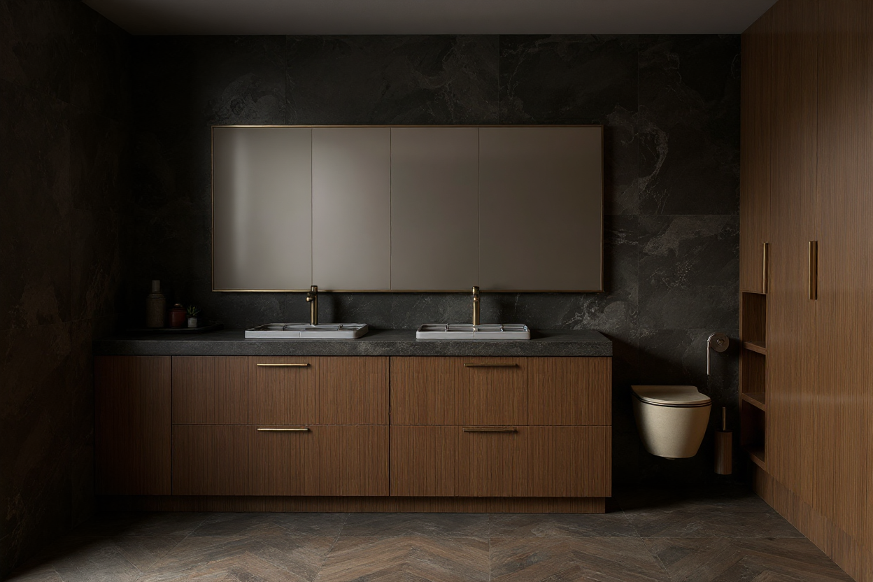 show the scene in winter late afternoon lit from inside and with a few guests outside light snowfall