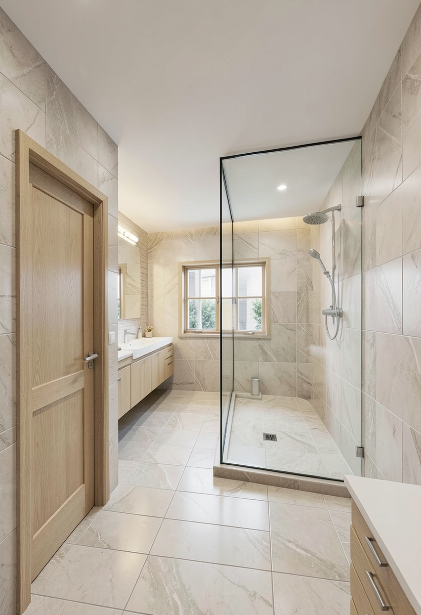 wood bulkhead above the cabinetry and a wood crown also add a horizontal picture light overtop of the 4 shallow cabinets