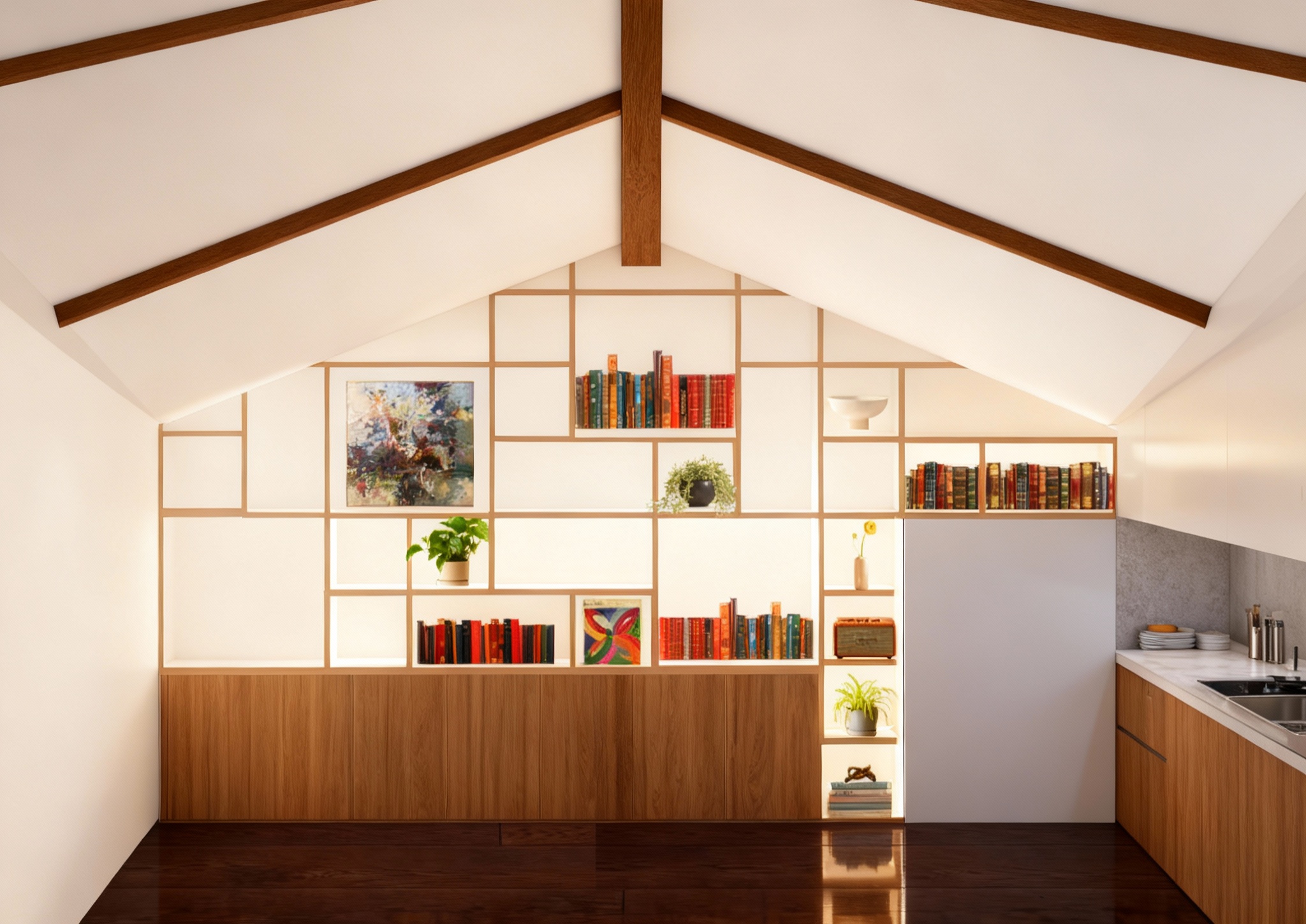keep rendering the same but the wall behind make a cream painted finish