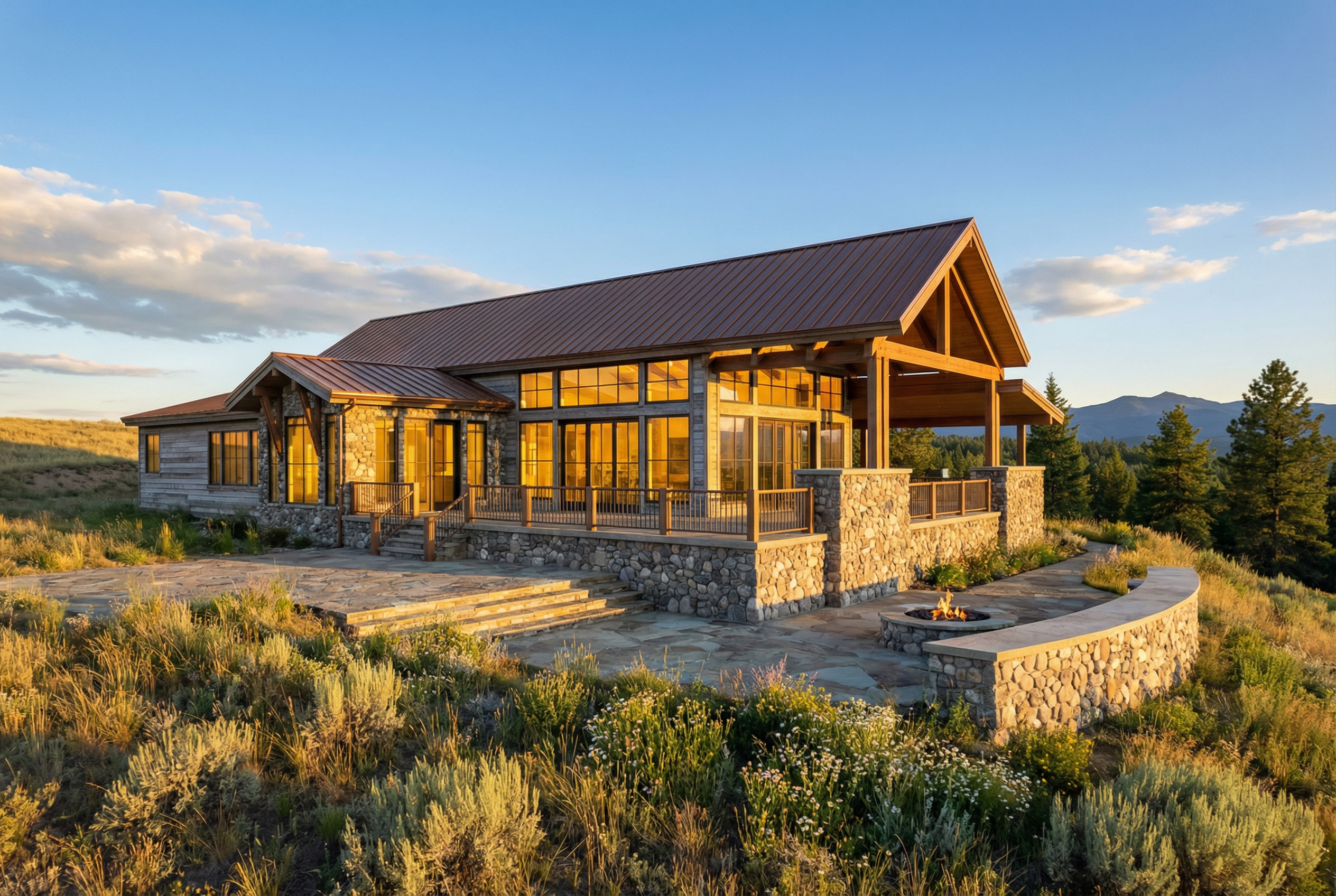 modernist exterior shot black roof tan brick black paint black frame windows architecture
