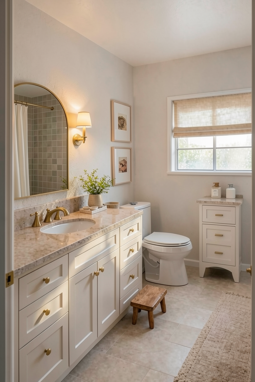 convert this floor plan into a realistic isometric 3d view of a full house show the space from an elevated angle with furniture walls and details visible generate a beautifully detailed photorealistic digital rendering of an apartment floor plan the scene should have a modern cozy ambiance with abundant natural light the overall atmosphere is welcoming and harmonious reflecting a serene and modern lifestyle the doors should all be white the flooring throughout should be floorfolio 748 1726 b sm which is a light grayish brown wood grain the countertops in the kitchen and bathrooms should all be white quartz in the kitchen the upper cabinets should be white and the lower cabinets should be oak wood the kitchen should also have sleek modern stainless steel appliances furniture should be organic modern with japandi influences in a blue and brown palette use the same furniture as shows on the plan do not change the orientation of the floorplan