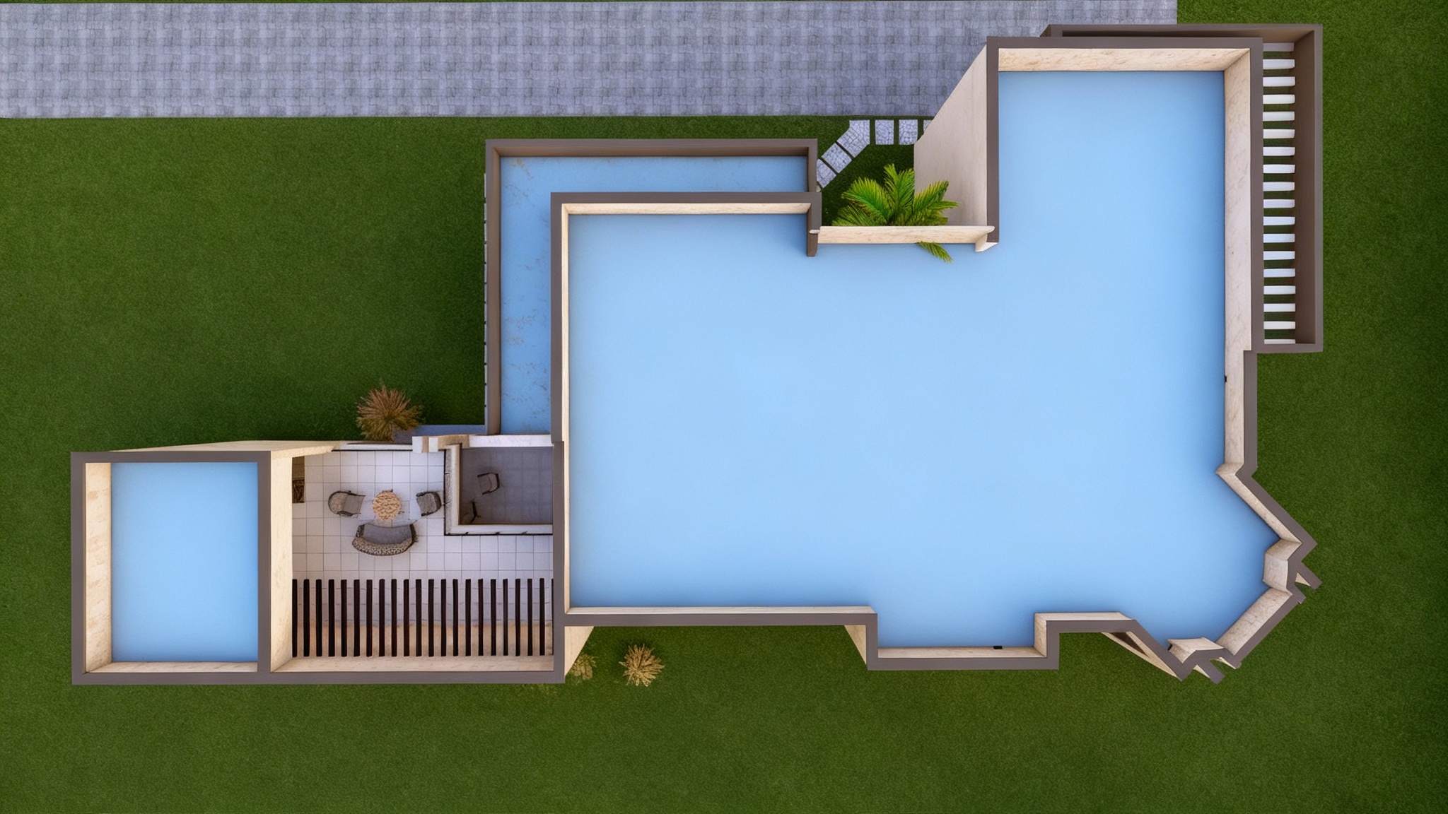 rendering this iso view satin finish tile floor in soft beige gray tone