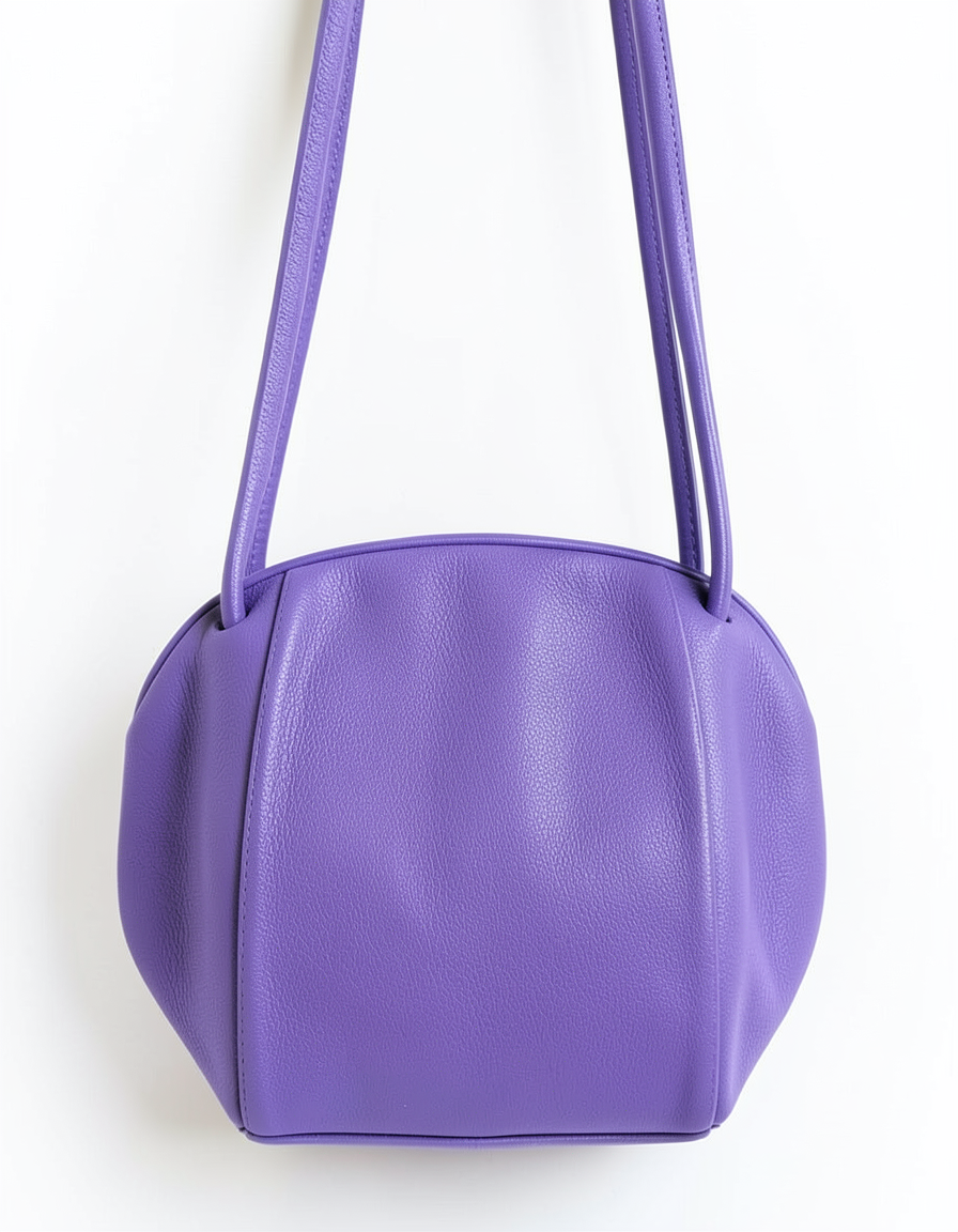 keep this exact same design with a white background have the body of the bag a baby blue suede and the straps are also the same leather