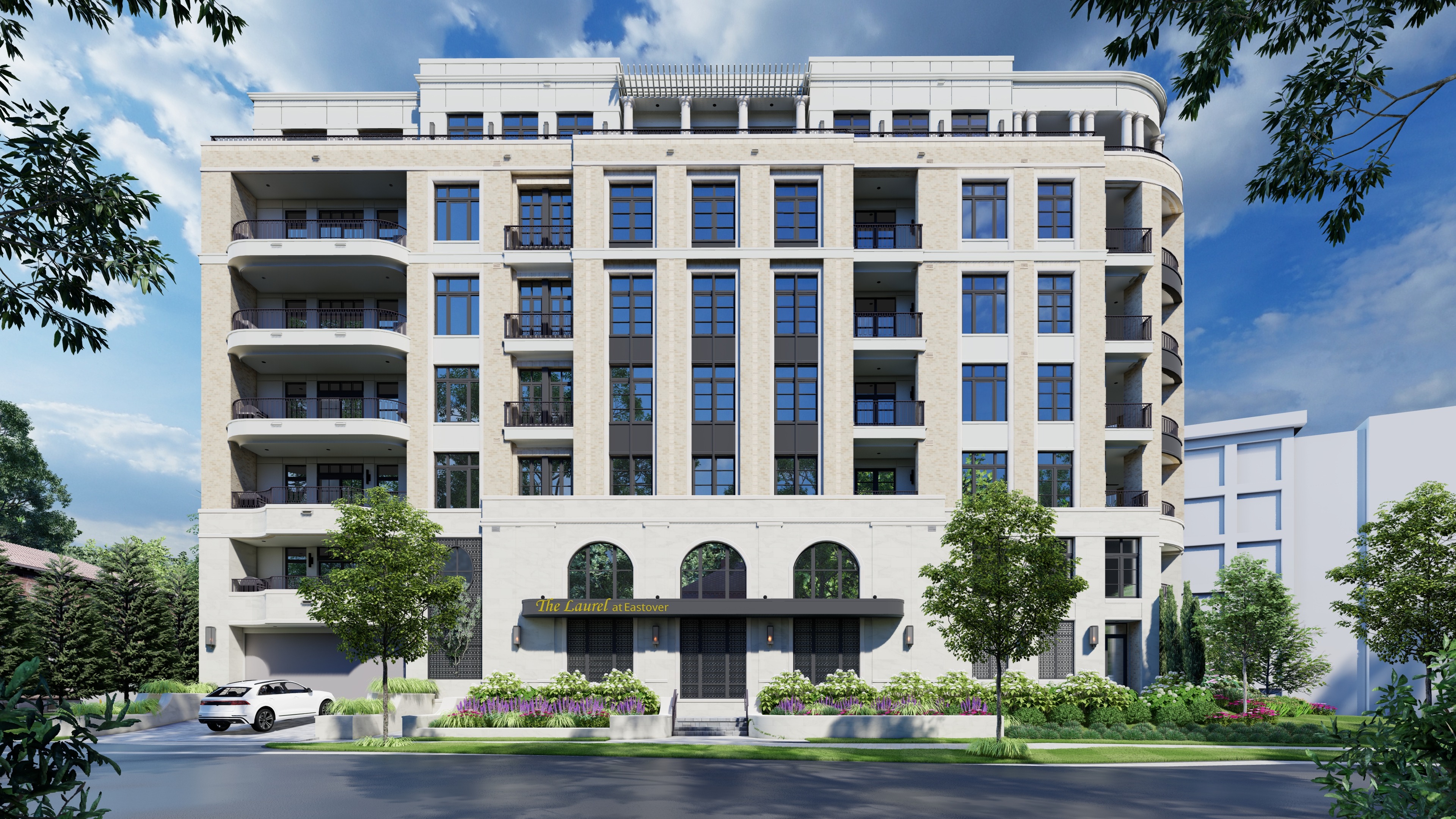 enhance materials warm inviting evening rendering for a high end luxury condo building lights in windows