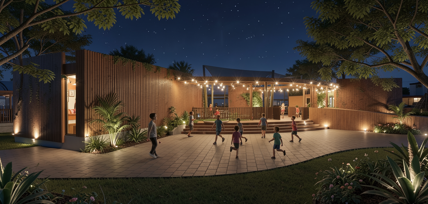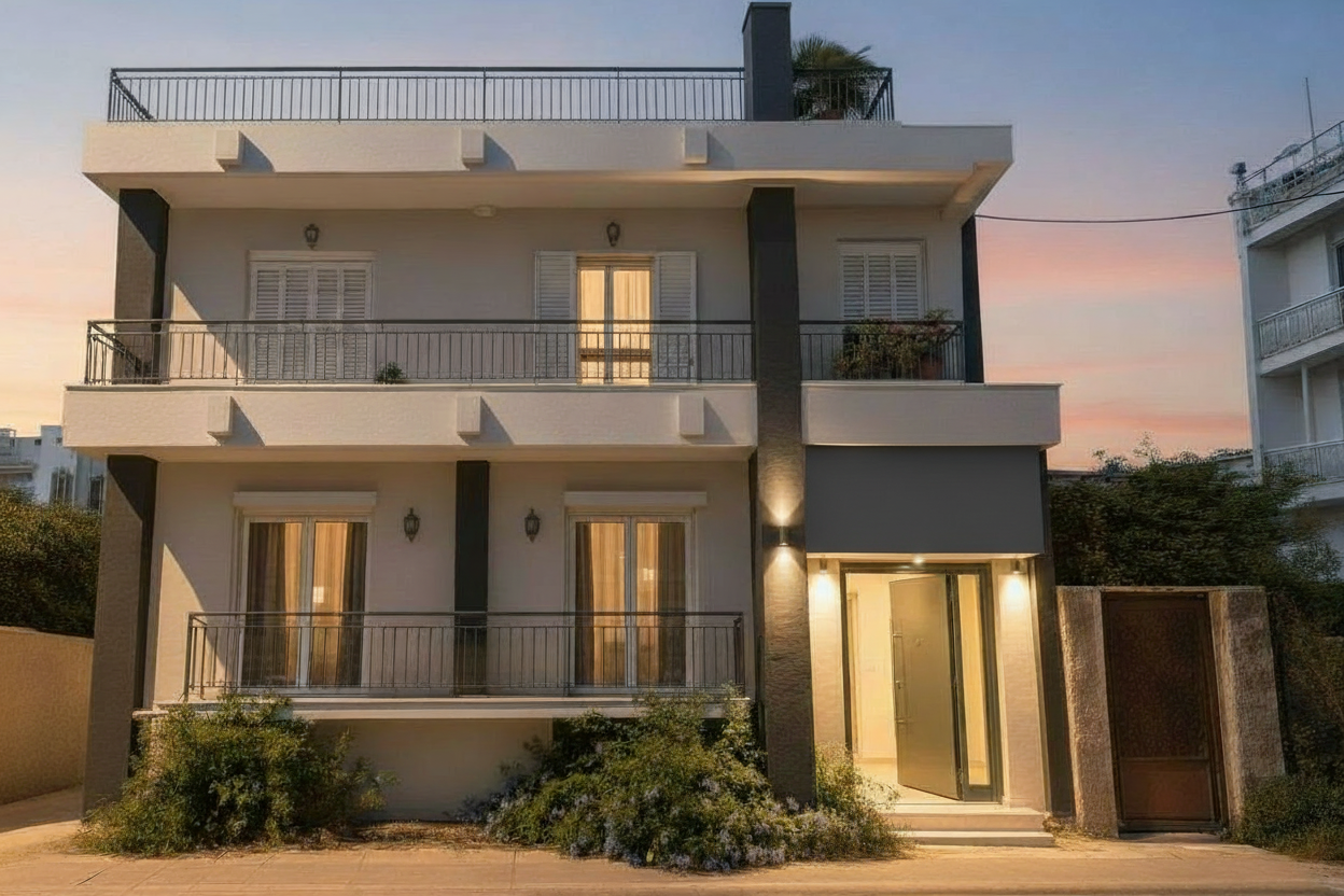 close the main entrance door completely add an illuminated vertical sign on the column next the entrance and write the number 35 on it by perforating it