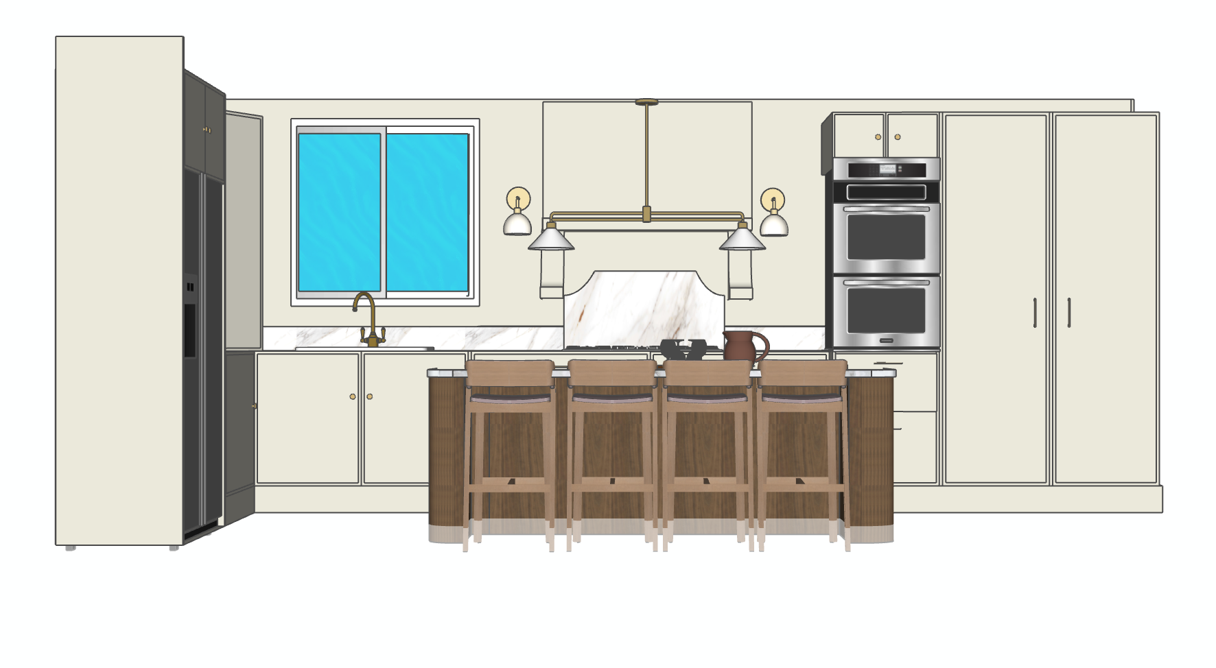 kitchen cupboards are off white kitchen island is dark oak
