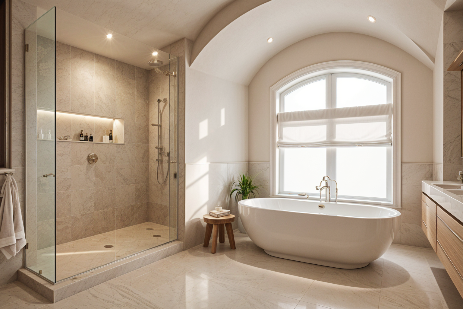 create an arch the the section of ceiling over the tub to follow arch of window do not raise ceiling