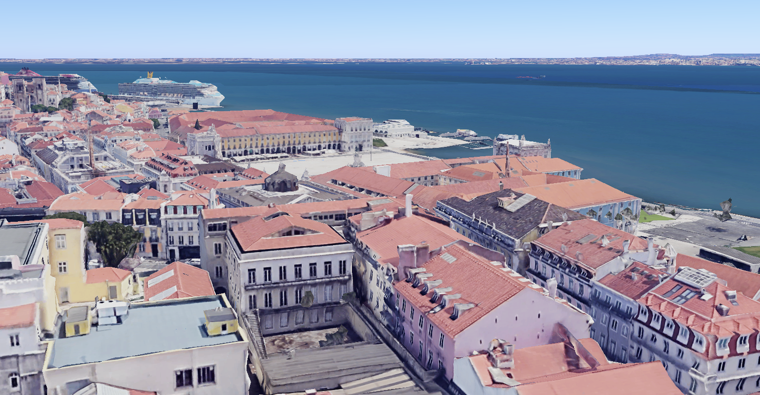 modernist aerial shot overview of lisbon from top of hill architecture