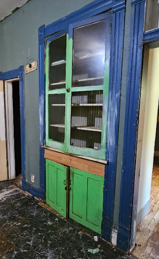 can you paint these cabinet doors felted wool by sherwin williams and change the glass to reeded glass add gold pull handles paint the trim and walls urbane bronze by sherwin williams