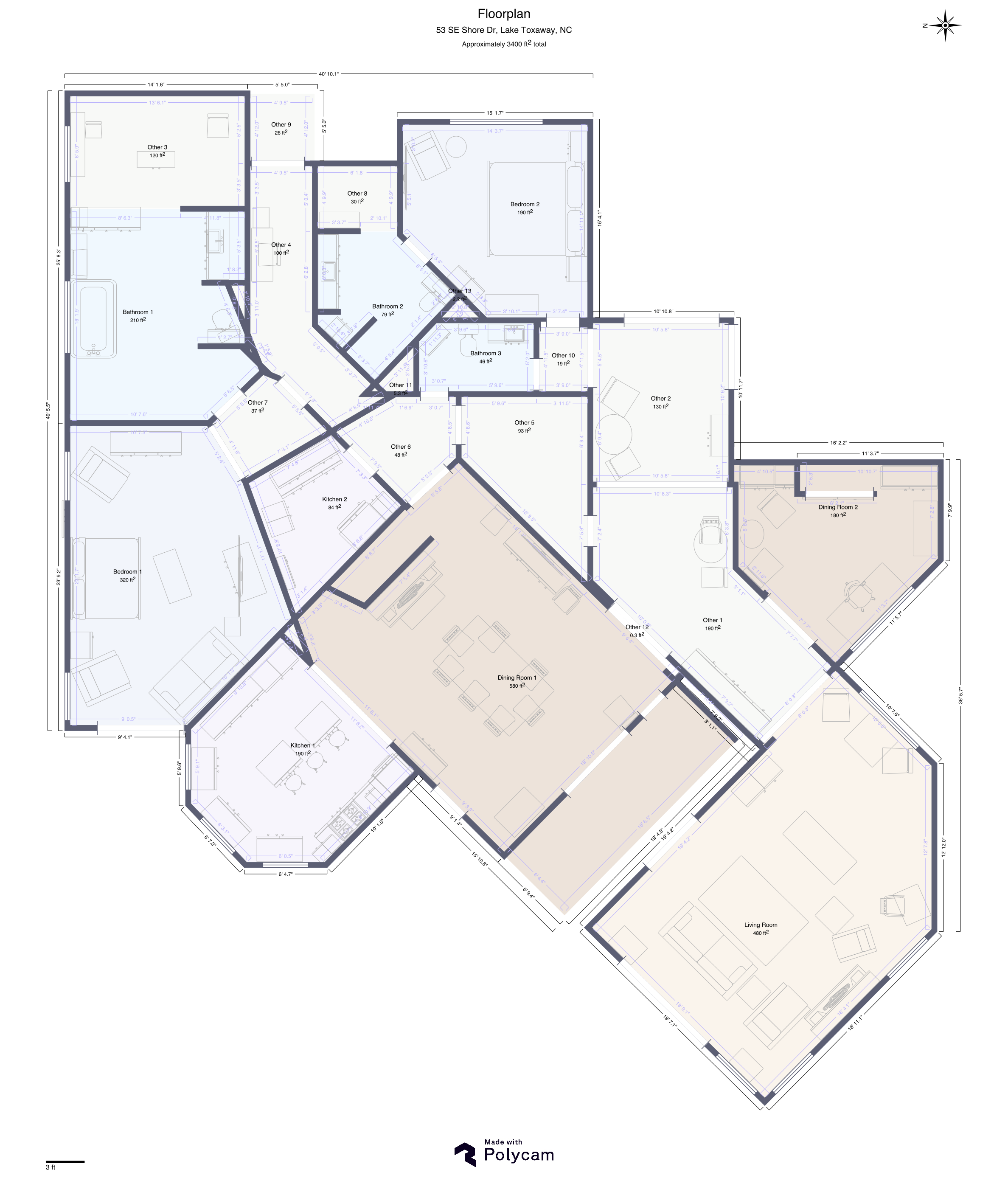 clean up this 2d floorplan to remove all furniture and create bolder larger font for measurements monochromatic please