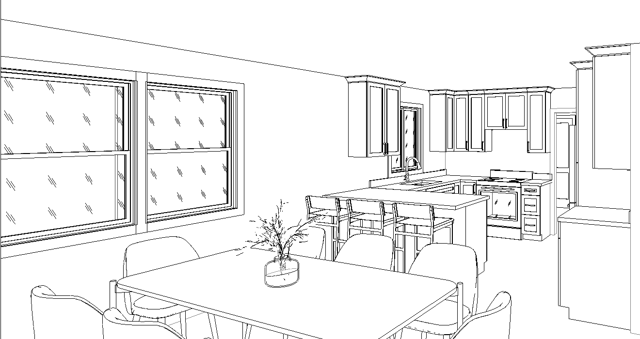 dining room with kitchen in the background cabinets should be wood with light colored countertops flooring should be wood transitional style
