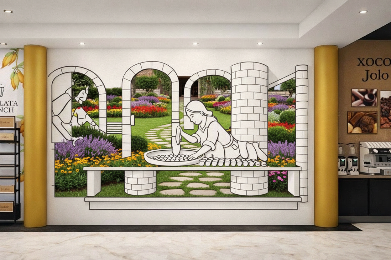 make the view outdoors a summer forest without changing anything else