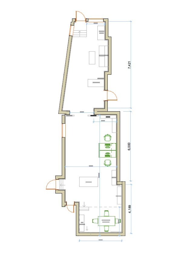 it s an old commercial space with wood on the bottom of the walls and some rocks in the walls it pretty dark and old
