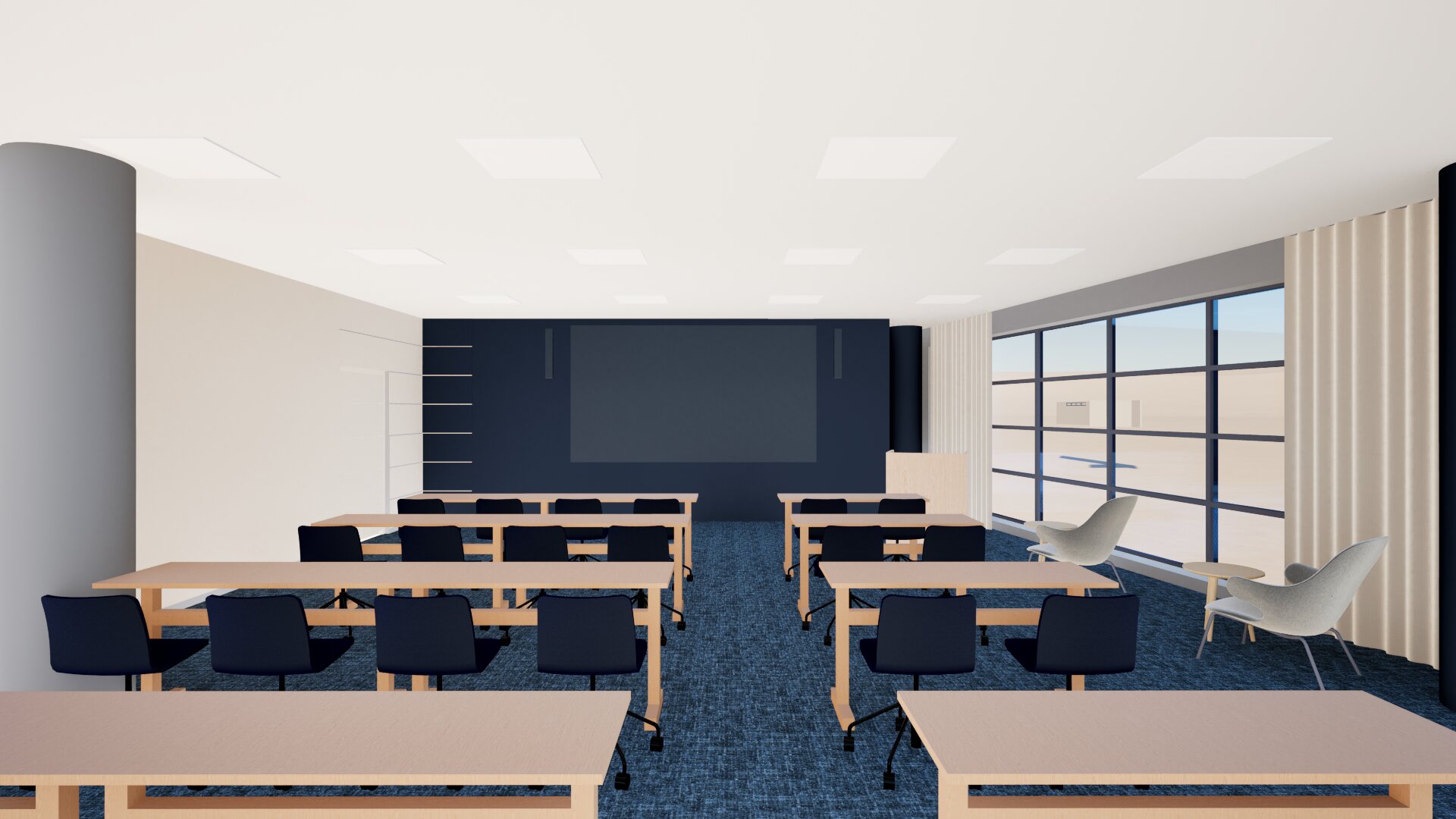 a modern minimalist bank auditorium interior atmosphere is calm the lighting is soft but white do not add anything do not remove anything