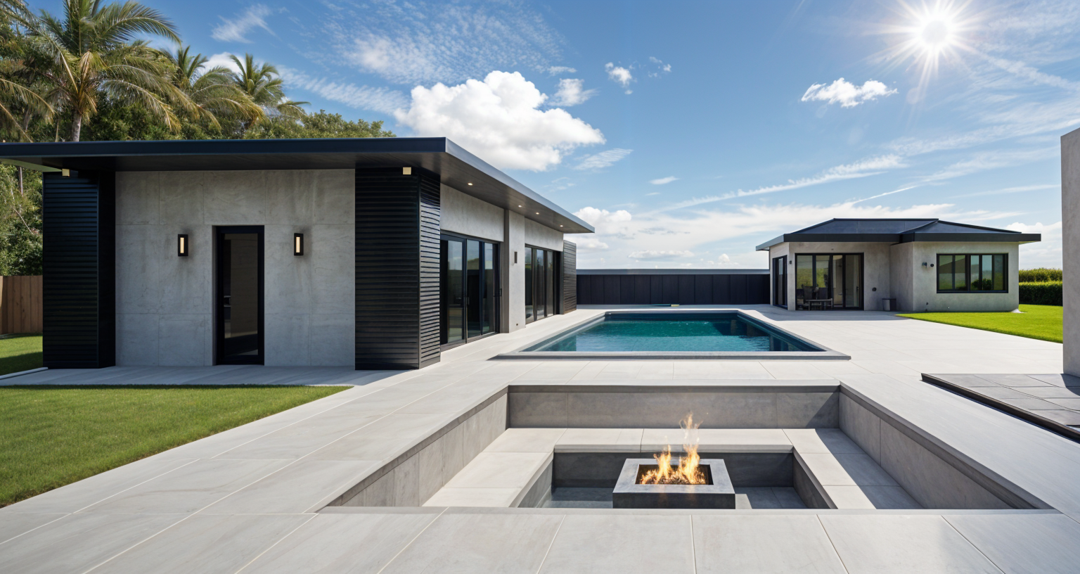 contemporary exterior shot perfect but there is a ceiling over the the fan architecture