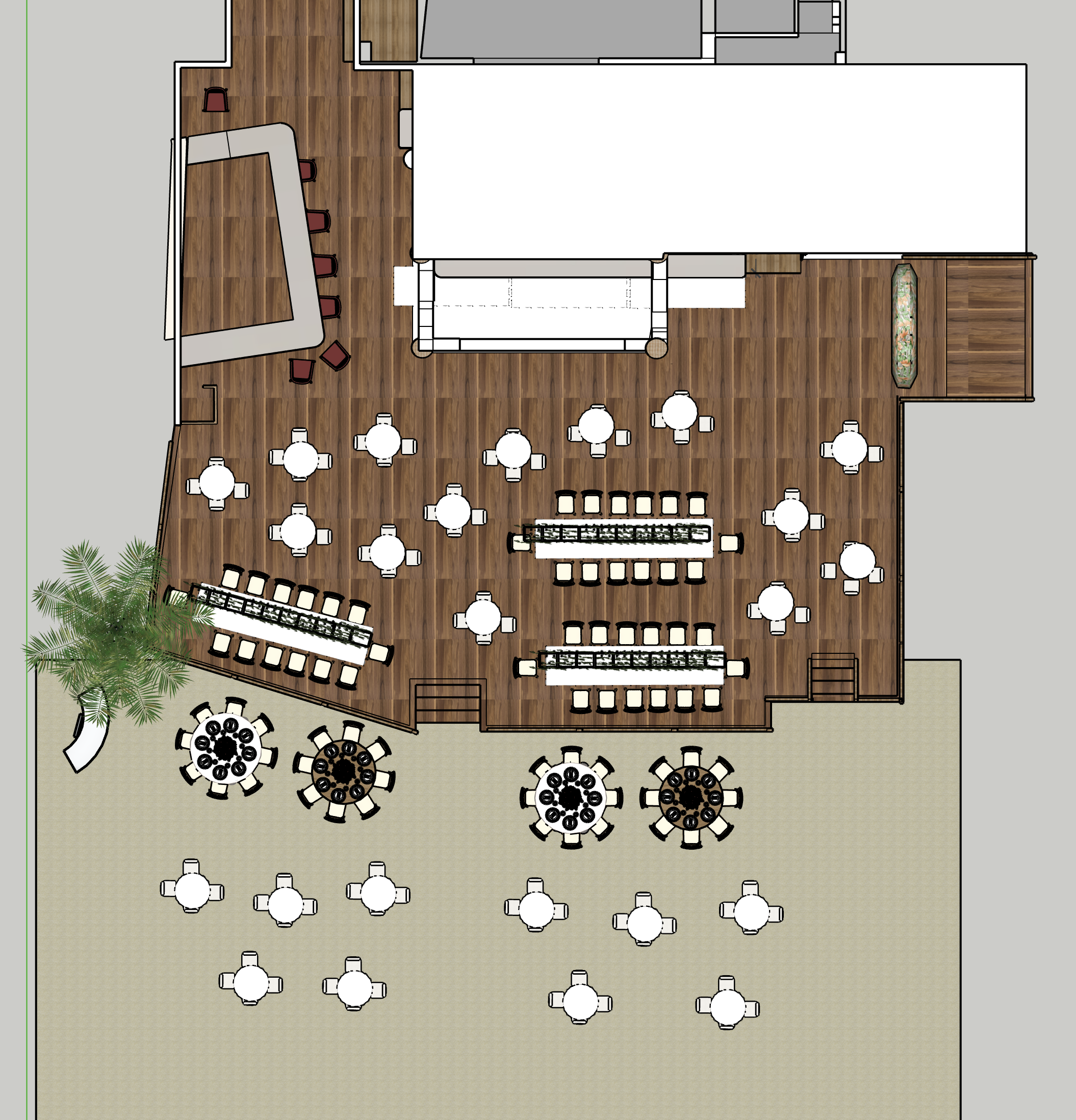 event setting in caribbean wooden floor wooden ceiling ground floor on sand and yute matt