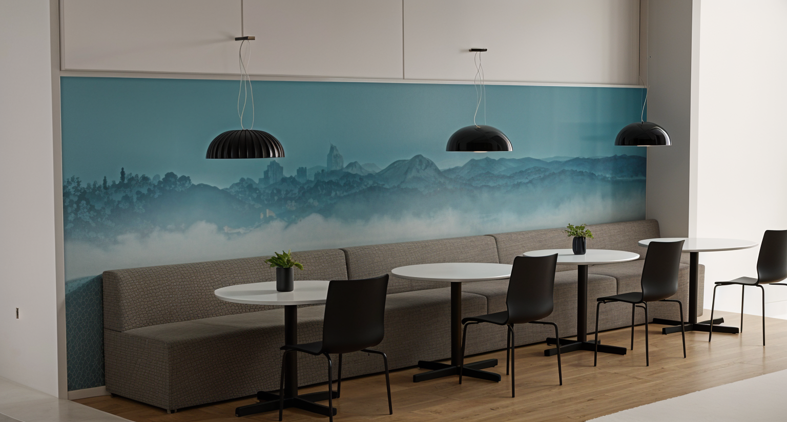 modern mediterranean style interior with light colors walls are white put closed door on the opening on the right side of the picture and standing high lamp on the left corner of the picture