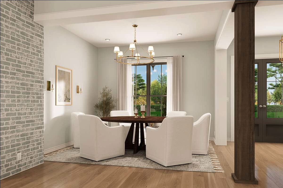 interior dining room rendering use more realistic textures and replace the center light fixture with a single pendant fixture architecture