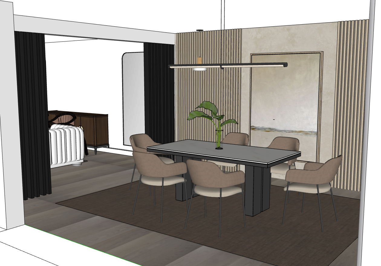 the ceilings are white light oak floors put lights coming out of lights remove the white door next to the cabinet and leave that wall white the black slats are not curtains but slats