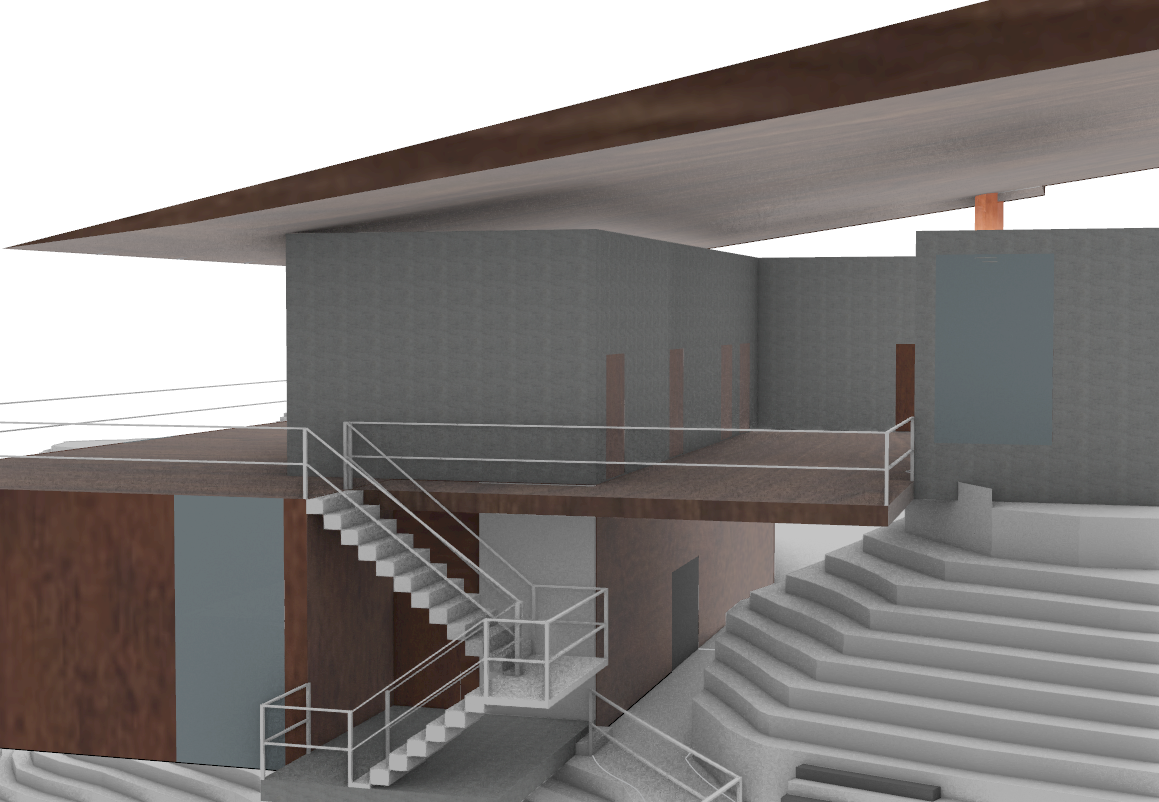 render with soft textures set in a dreamy misty bright forest and smooth ground in the background render in watercolor style and place smaller table on second floor wood slats floor