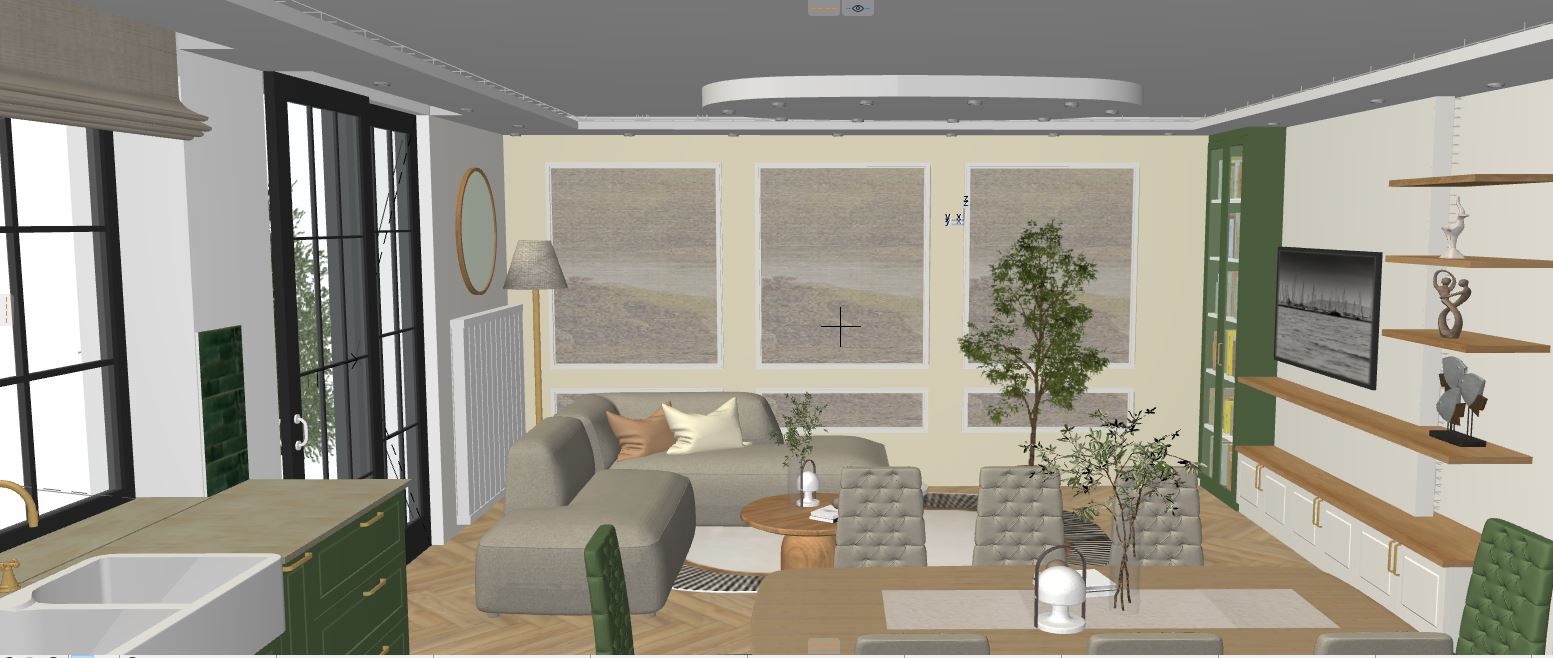k sz ts leny g z fotorealisztikus nappali k pet dekor d l sd el rejtett f nyekkel a mennyezeti dobozol s felett a magas szekr ny polcai vil g tsanak s legyenek benne t rgyak