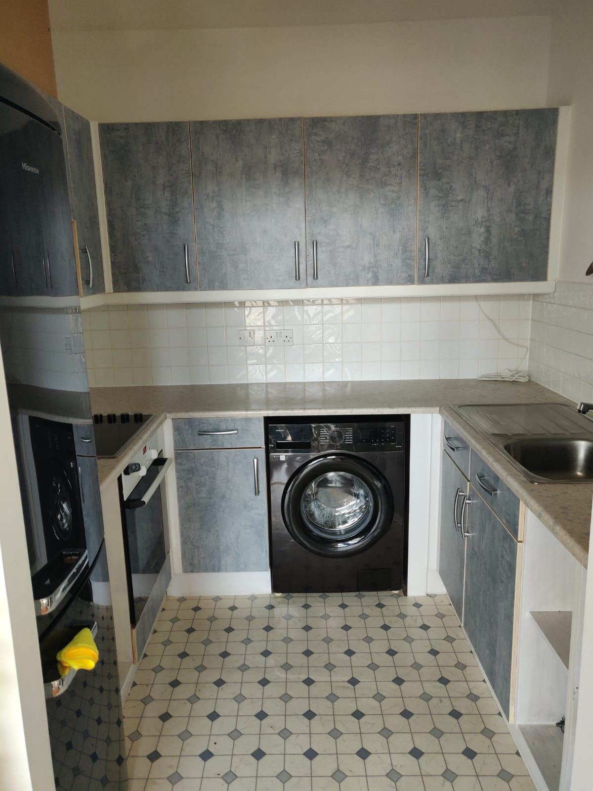 can you add cabinets above the existing upper wall cabinest tak them to the ceiling to maximise storage make all the cabinets handles and a matt grey slab remove all handles from the cabinets zero handles no handles remove handles lets have timber work tops in black american walnut all cabinets plinths and kitchen cabinet elemts to be the same grey colour as the doors gey plinth grey plinth grey plinth