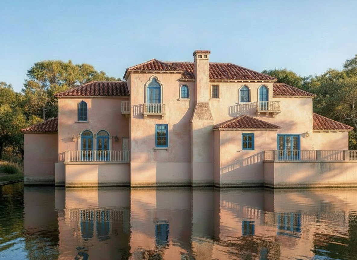 extend the right patio pass the chimney with the same color of the wall and rails but it only goes pass the chimney