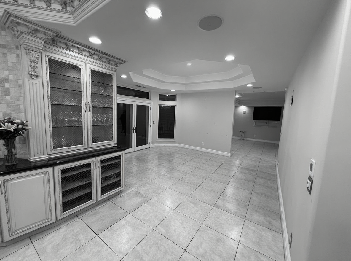 remove all furniture chandeliers and items on the counter remove the table and chairs remove the chandeliers