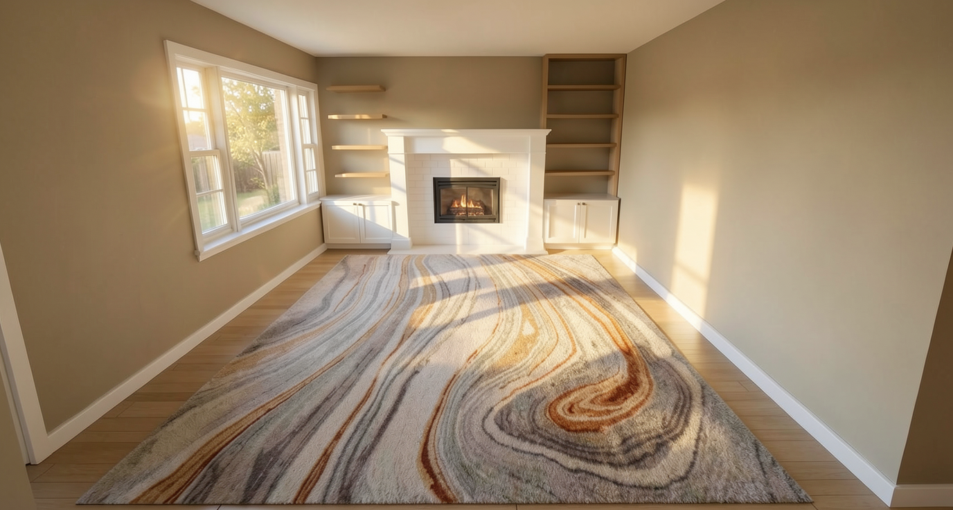 6pm evening a modern two story house with a sleek design and hip roofs featuring medium sand colored stone black framed windows the roof is a dark charcoal color adding contrast large windows dominate the facade reflecting the clear blue sky surrounding the house a lush green lawn with colorful flower beds in shades of pink lavender and yellow lansdcape stones dot the yard the atmosphere is serene and welcoming with evening sunlight casting gentle shadows and light reflecting through the windows do not modify the massing as shown