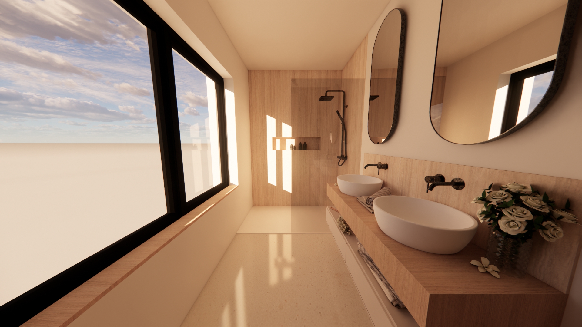 add realism back ground behind windows is a street view from the seond floor and blurred